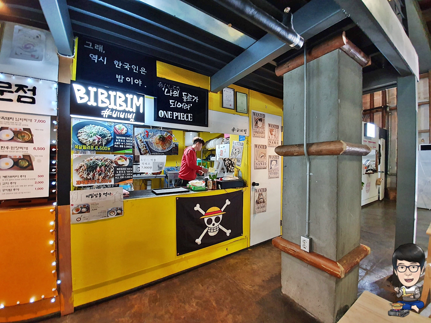 아직 식사를 해결하지 못 했어서 청춘창고 내 비비빔이라는 가게에서 음식을 주문했습니다.