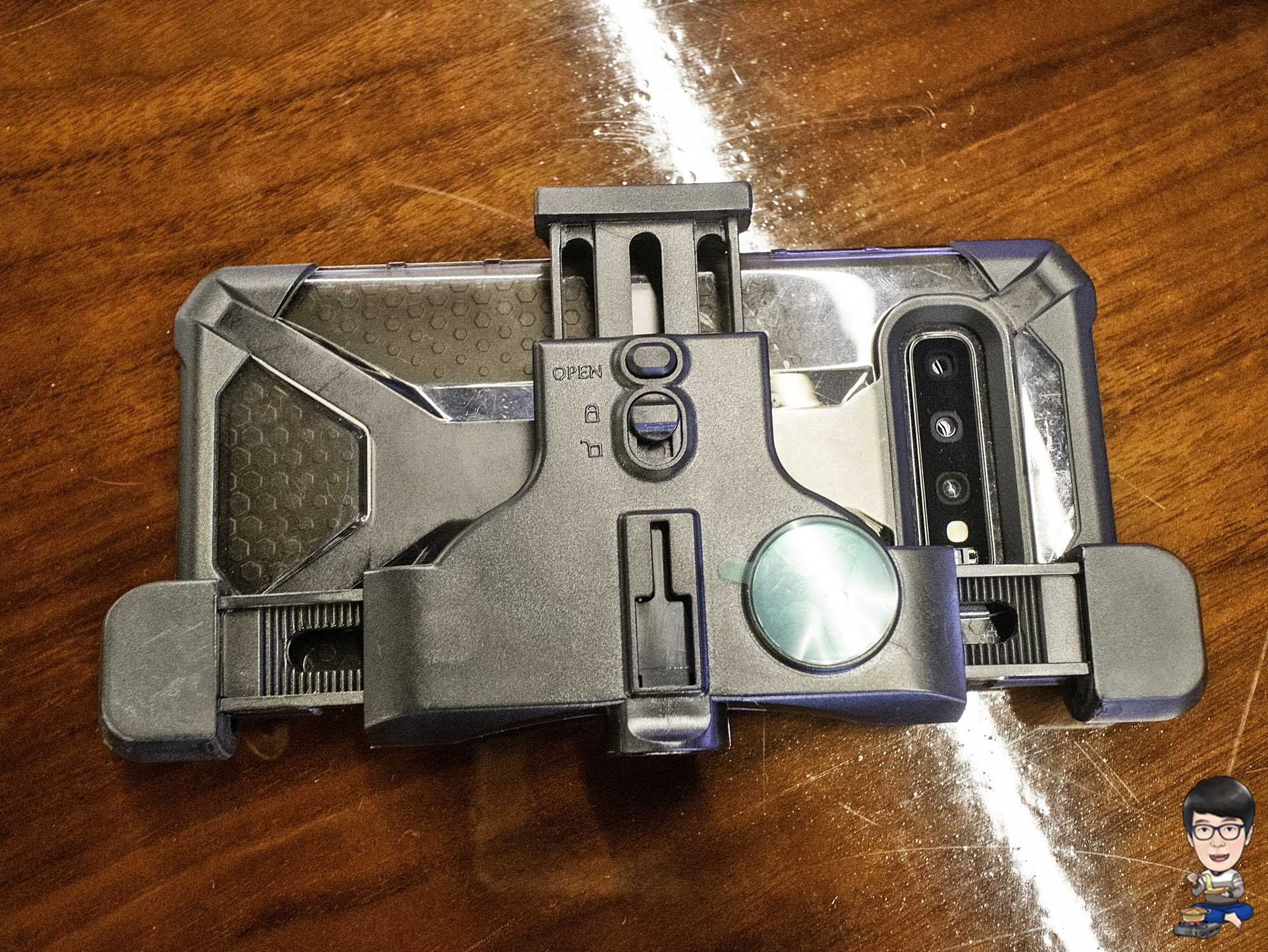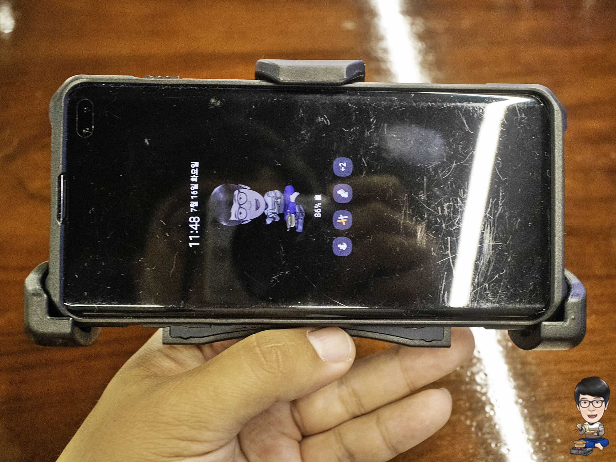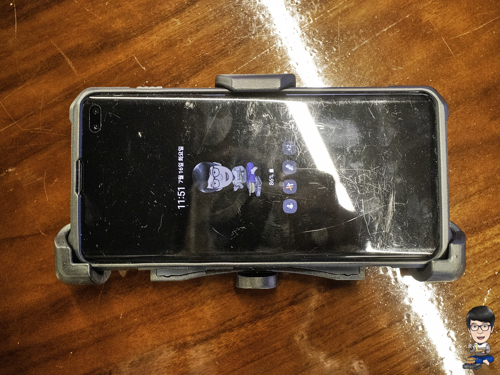 스마트폰의 크기가 점차 커지면서 셀카봉이나 스마트폰 삼각대에 기본 제공되는 저가의 스프링 거치대에 스마트폰을 끼우기가 힘들던데, 이 제품은 크기가 제법 큰 갤럭시S10 플러스도 무리없이 장착을 할 수 있었습니다.