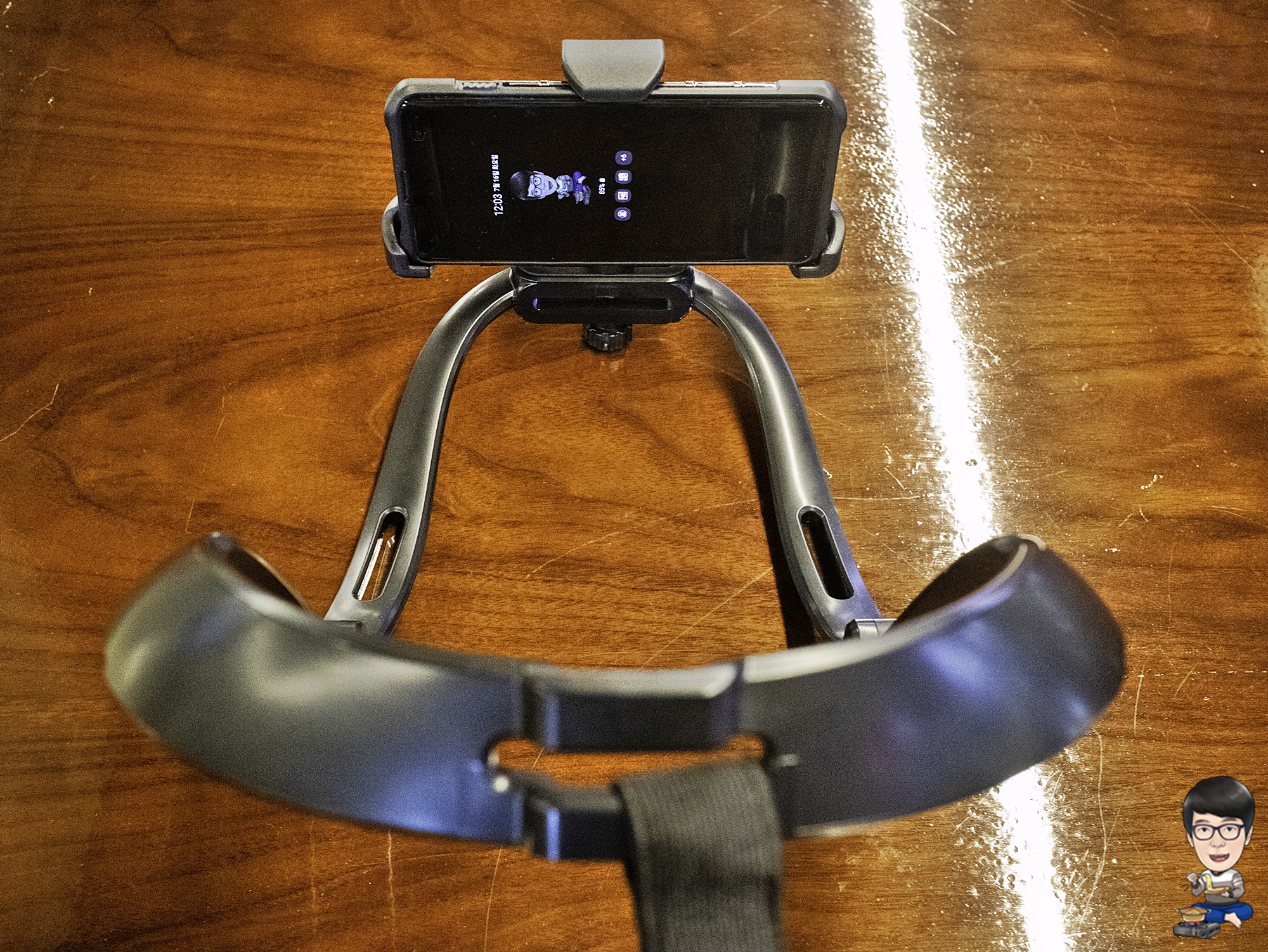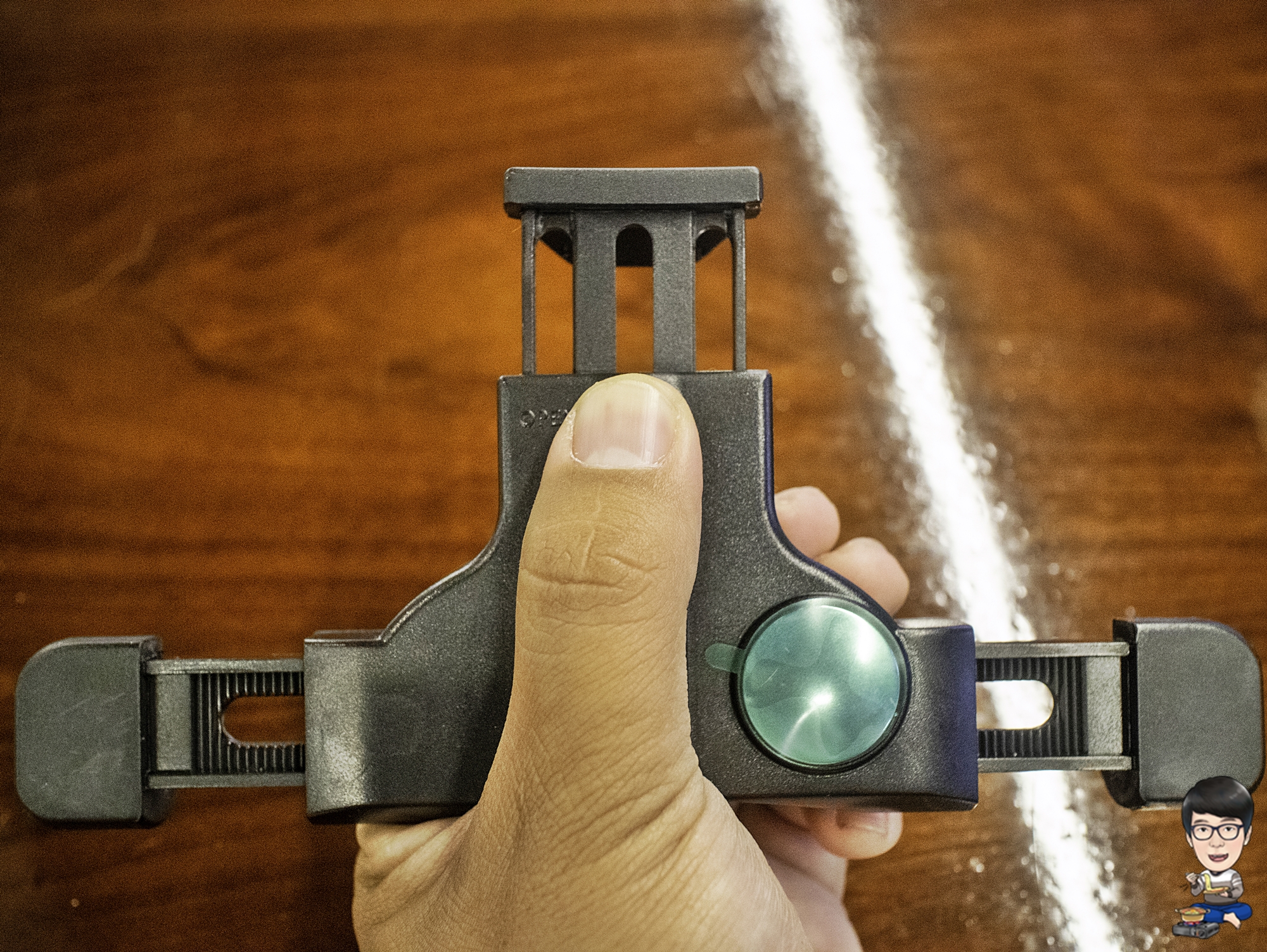 스마트폰을 거치대에 끼운 다음, 좌우 기어와 상단 기어를 스마트폰 사이즈에 맞춰 조여줍니다.
