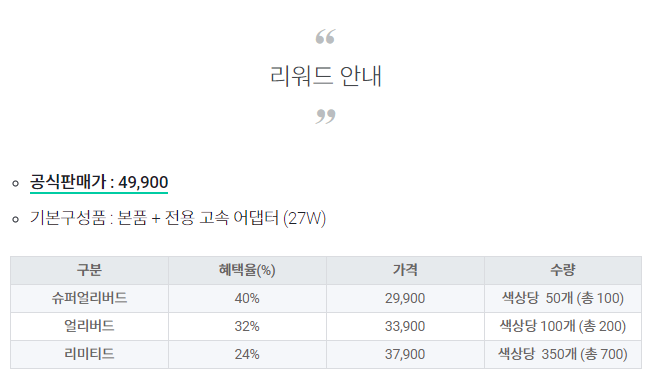 공식 판매가는 49,900원인데 펀딩에 참여하면 그보다 저렴하게 구매가 가능하다고 해서 저는 리미티드 혜택을 받아 37,900원에 구매했습니다.