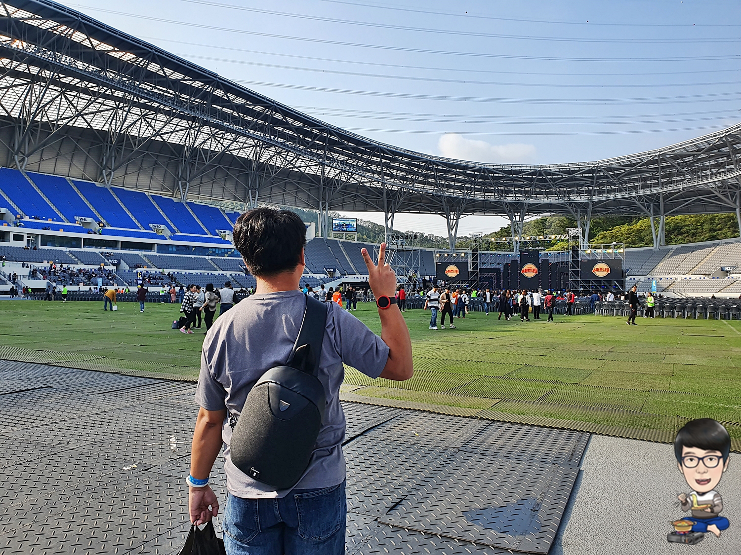 저야 비교적 앞 쪽에 해당되서 큰 불편함은 없었는데, 용인시민체육관을 거의 가득 채웠을 정도로 많은 인파가 몰렸던 것에 비하면 스크린 크기가 턱 없이 작아서 뒷 쪽에 앉은 분들과 그라운드가 아닌 객석에 앉은 분들은 콘서트를 제대로 즐기기 힘드셨을 것 같다는 생각이 들었습니다.