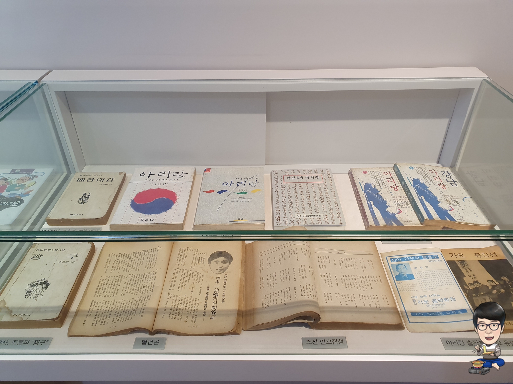 소설 아리랑의 한 구절이 벽면과 내부 스피커를 통해서 흘러나옵니다.