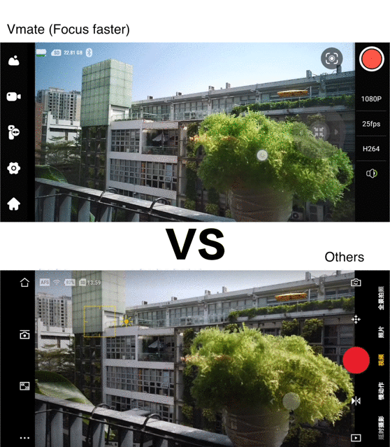 제조사인 Snoppa에서는 브이메이트 장점 중 빠른 AF(Auto Focus)를 내세우고 있는데요, 비교 대상으로 나온 스마트폰이 어떤 제품인지는 모르겠고, 영상 촬영 시 AF 능력에 대해서는 언급되지 않아서 이 부분은 제품 출시 후 테크 리뷰어나 블로거들의 후기를 지켜봐야 할 것 같습니다.