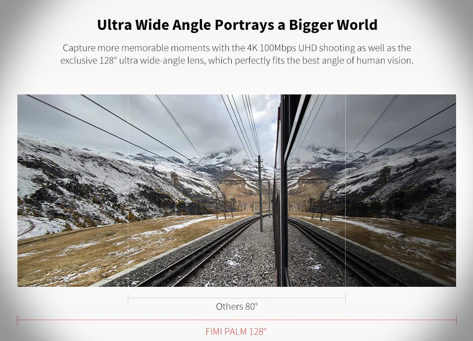 화면 왜곡 현상을 어떻게 보정을 했을지 아직 확인할 수가 없지만, 오즈모 포켓의 80도 화각에 답답함을 느꼈던 분들에게 샤오미 피미 팜의 128도 화각은 부러움으로 남을 것 같습니다.