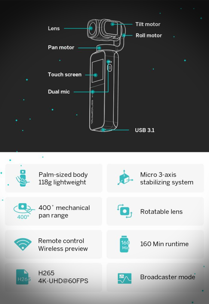휴대성이 뛰어난 짐벌을 제조하던 스노파에서 포켓 짐벌을 야심차게 준비했습니다.