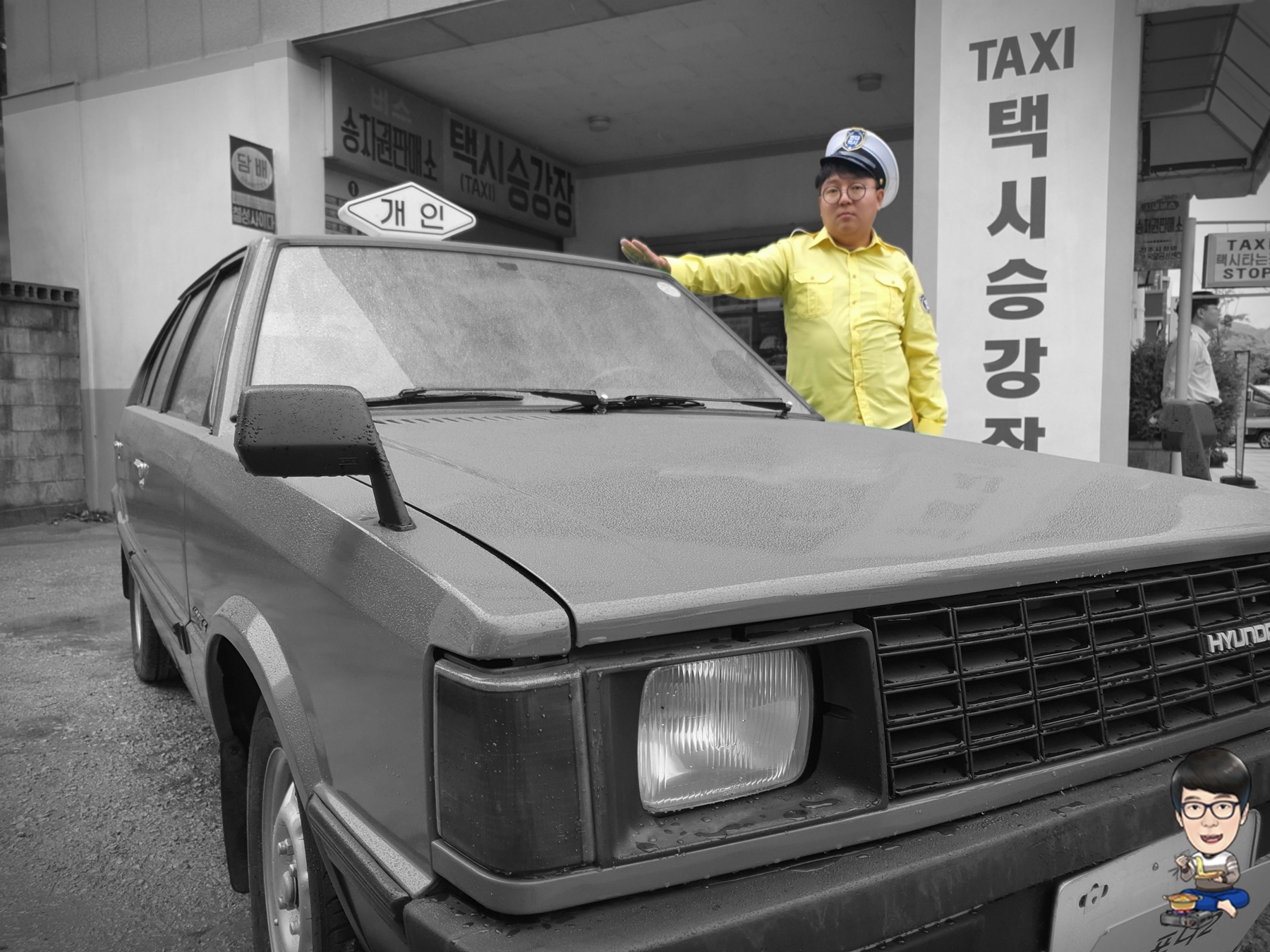 진열된 택시의 차종은 현대 포니2!