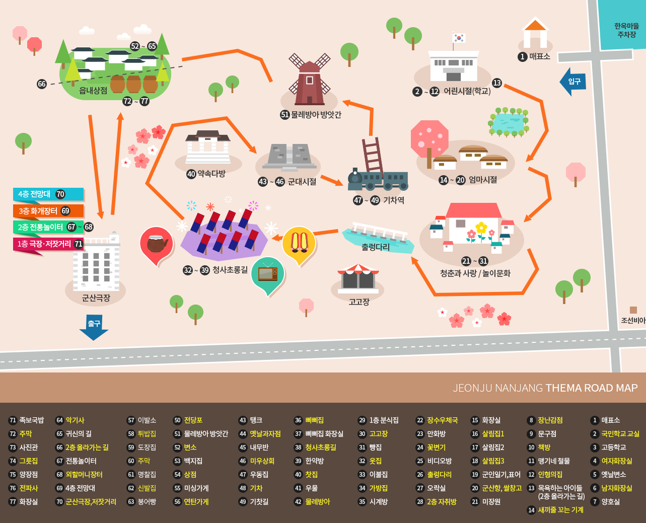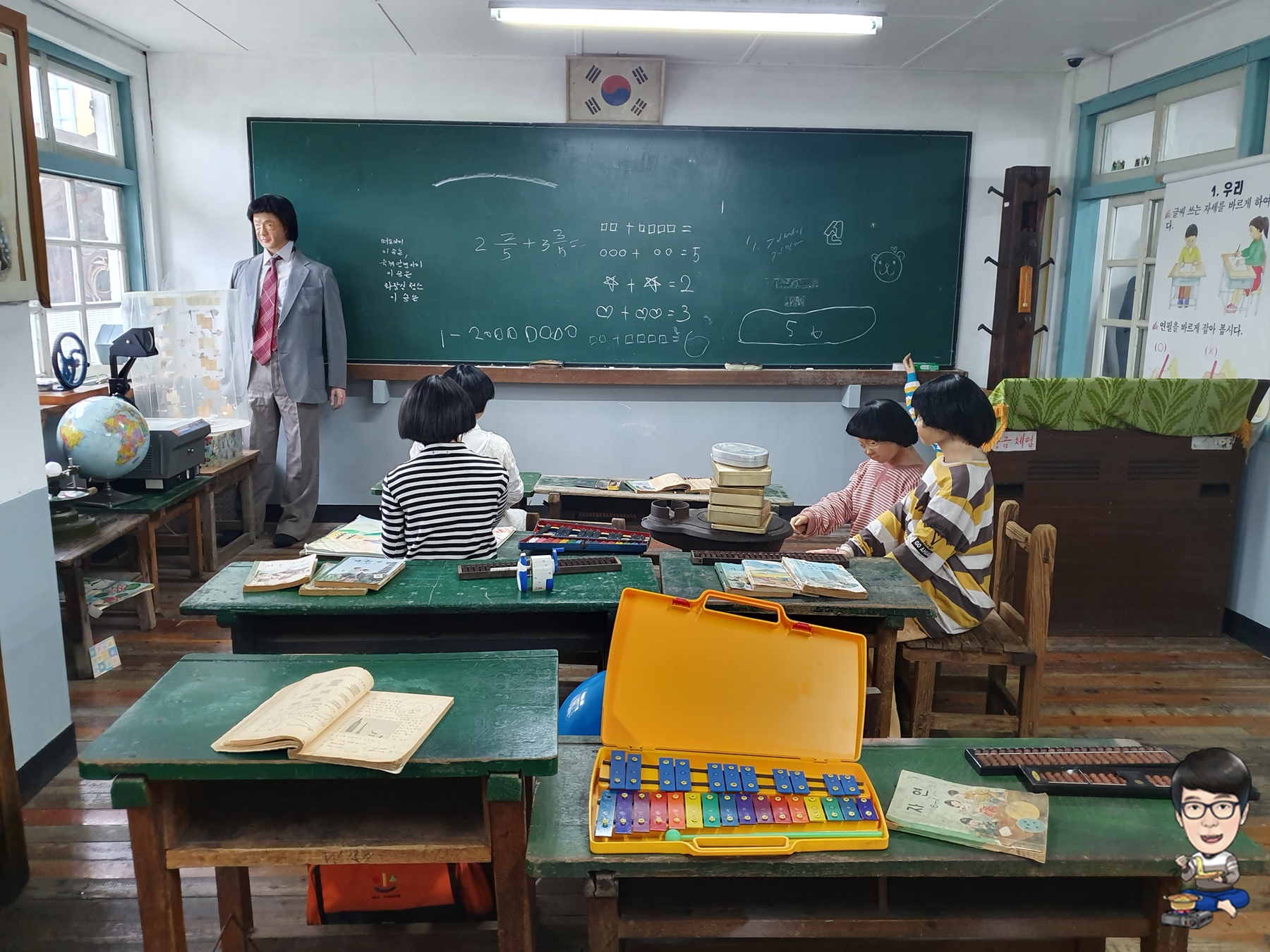 전주난장은 매표소에서 입장권을 구입하면 건물 1층으로 이동, 학교 복도와 교실 등을 구경하고 실외로 나와서 2층으로 이동하게 되고, 2층에서 다시 1층으로 내려가도록 전시관을 구성해놨습니다.