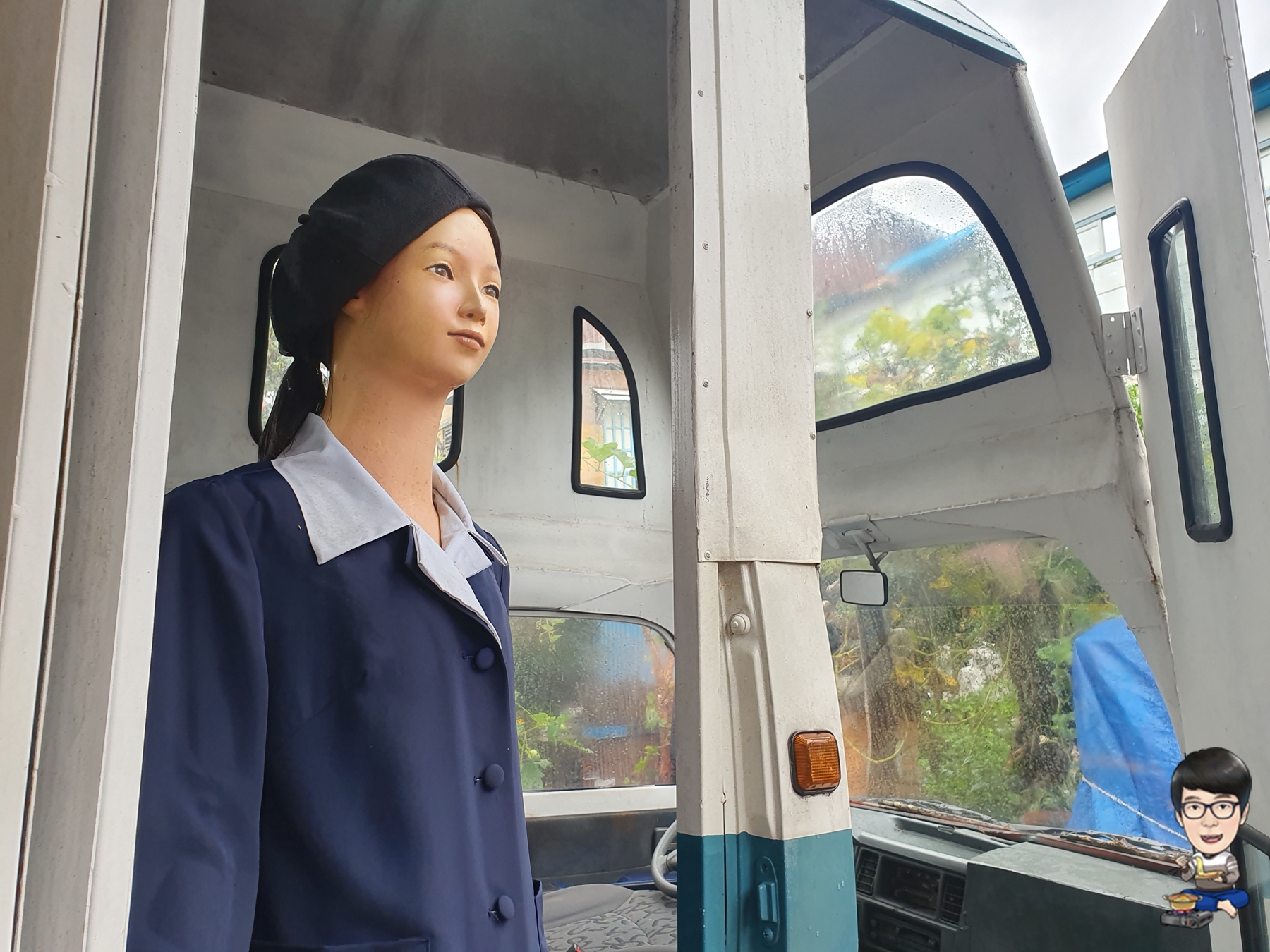 매표소 바로 옆에 버스와 비슷하게 만들어진 조형물과 버스 안내양이 있길래 찍어봤습니다.