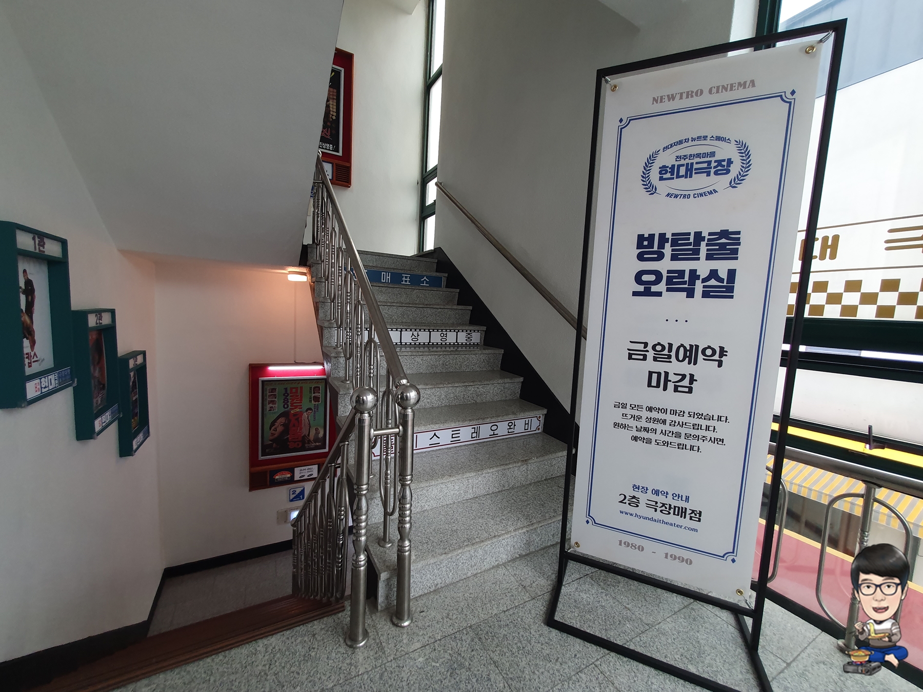 저희가 오전 11시쯤 방문했는데 이미 금일 예약 마감 안내문이 붙었더라구요. 현대극장 문 닫기 전에 방탈출 체험하러 다시 가고 싶었는데... 끝내 저 방탈출의 모습은 구경할 수 없었습니다.