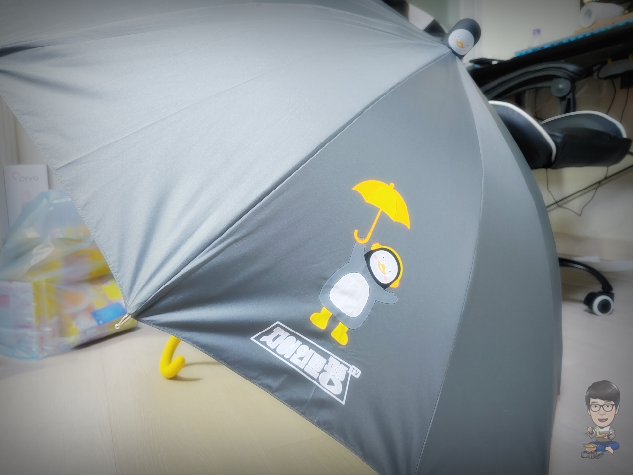 맥콜 쓰레빠를 질질 끌며, 사전예약 주문자가 취소해서 간신히 딱 1개 남은 펭수 장우산을 획득했습니다.