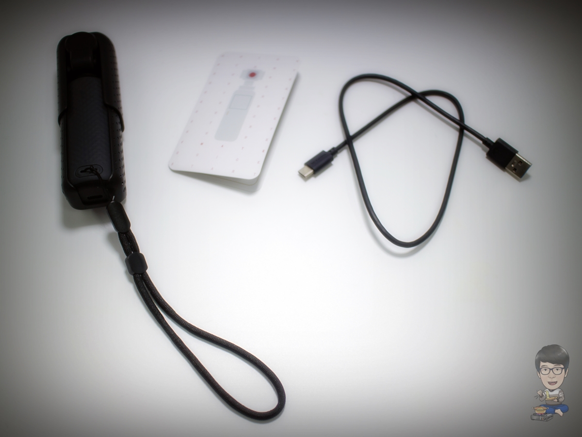 Snoppa Vmate 패키지에는 Vmate 본체가 스마트폰 장착이 가능한 케이스를 장착한 상태로 담겨져 있었고, 손목스트랩과 사용 설명서, USB C Type 케이블도 담겨져 있었습니다.
