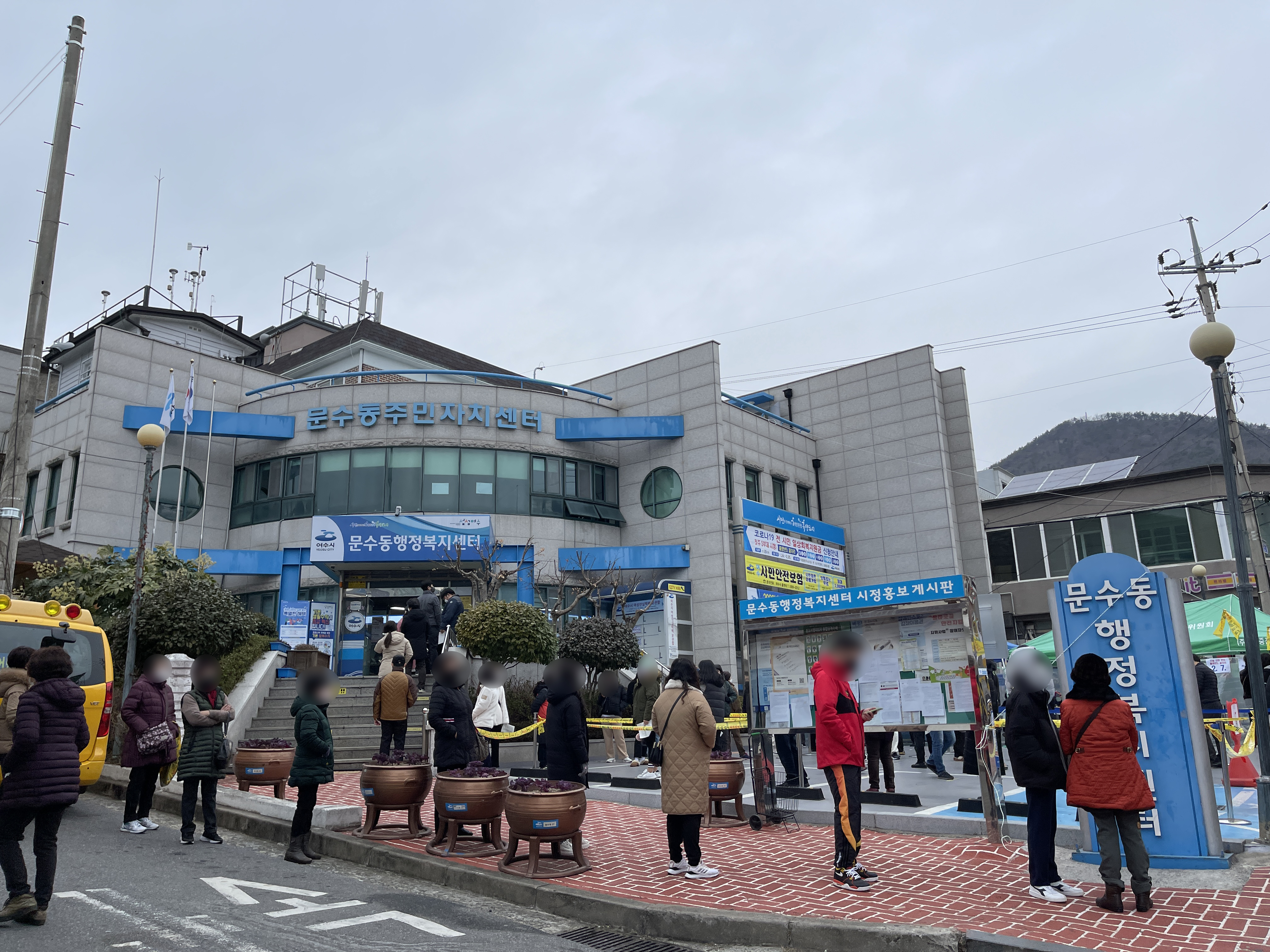 일상회복지원금 신청서는 행정복지센터 주차장에 임시로 지어진 천막에서 작성할 수 있었고, 지원서 검토 및 지원금 지급은 행정복지센터 건물 안에서 이뤄졌다.