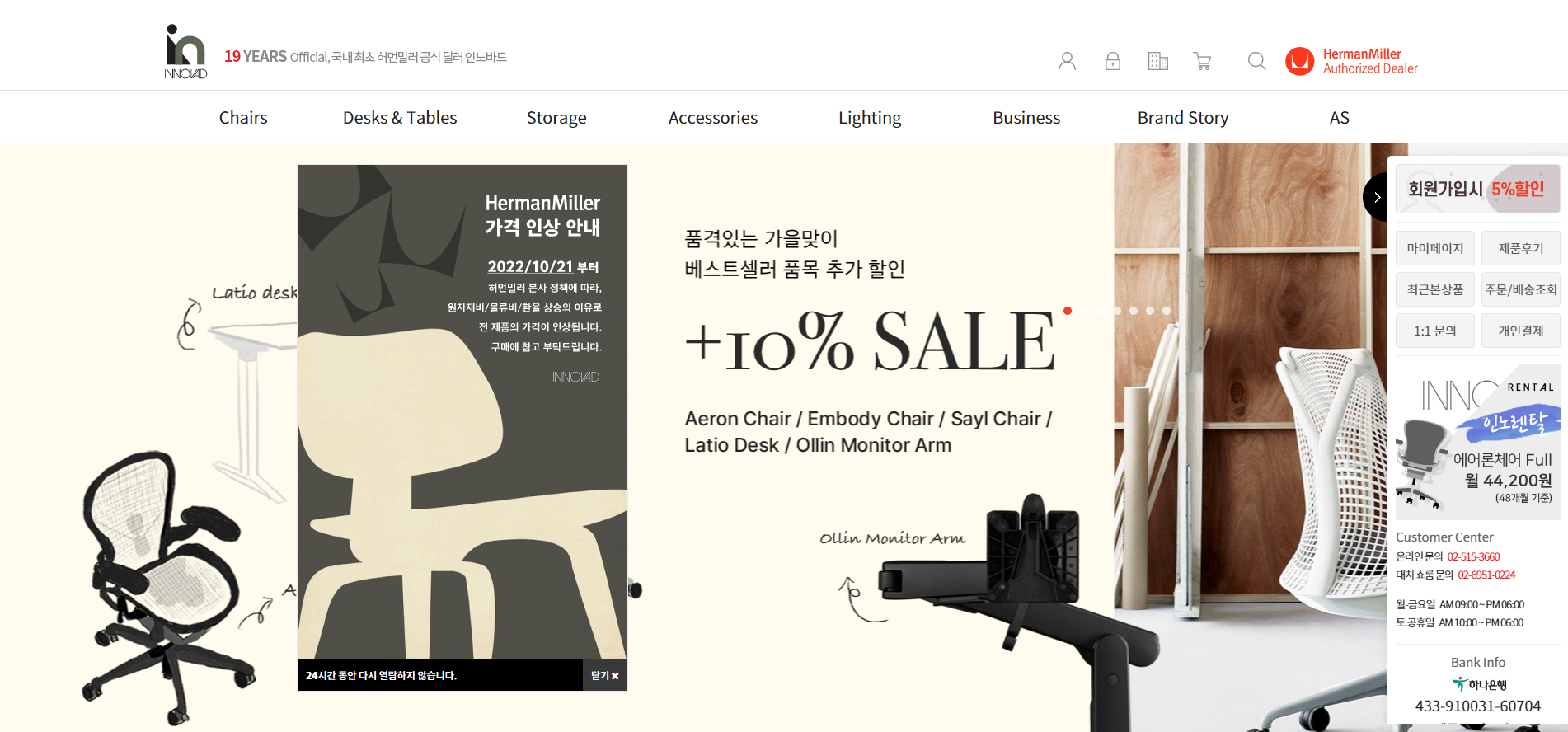 비싼 의자인만큼 직접 앉아보고 구매를 결정하라는 말들이 많았는데, 이 놈의 여수 촌동네에는 허먼 밀러 체험을 할 곳이 없고... 그 와중에 인노바드 홈페이지에 10월 21일부터 가격이 인상된다는 공지사항까지 발표되니...