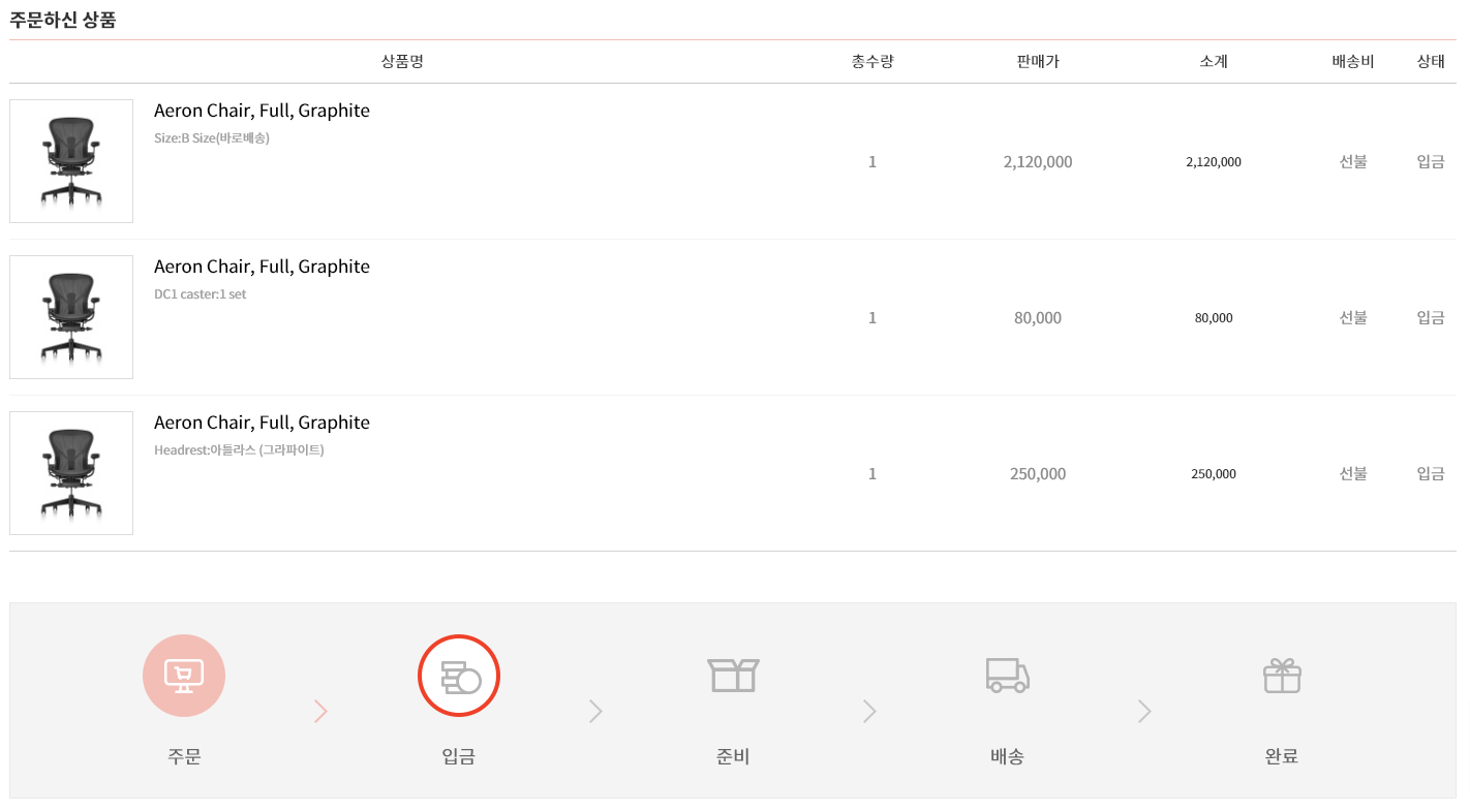 선택한 의자는 허먼 밀러 에어론(Aeron Chair Full. Graphite)