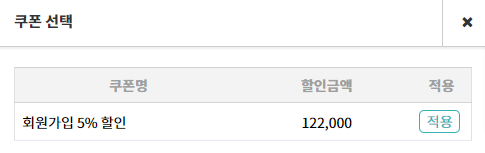 신규 회원에게는 5% 할인 쿠폰을 제공해서 122,000원을 할인 받을 수 있었지만...