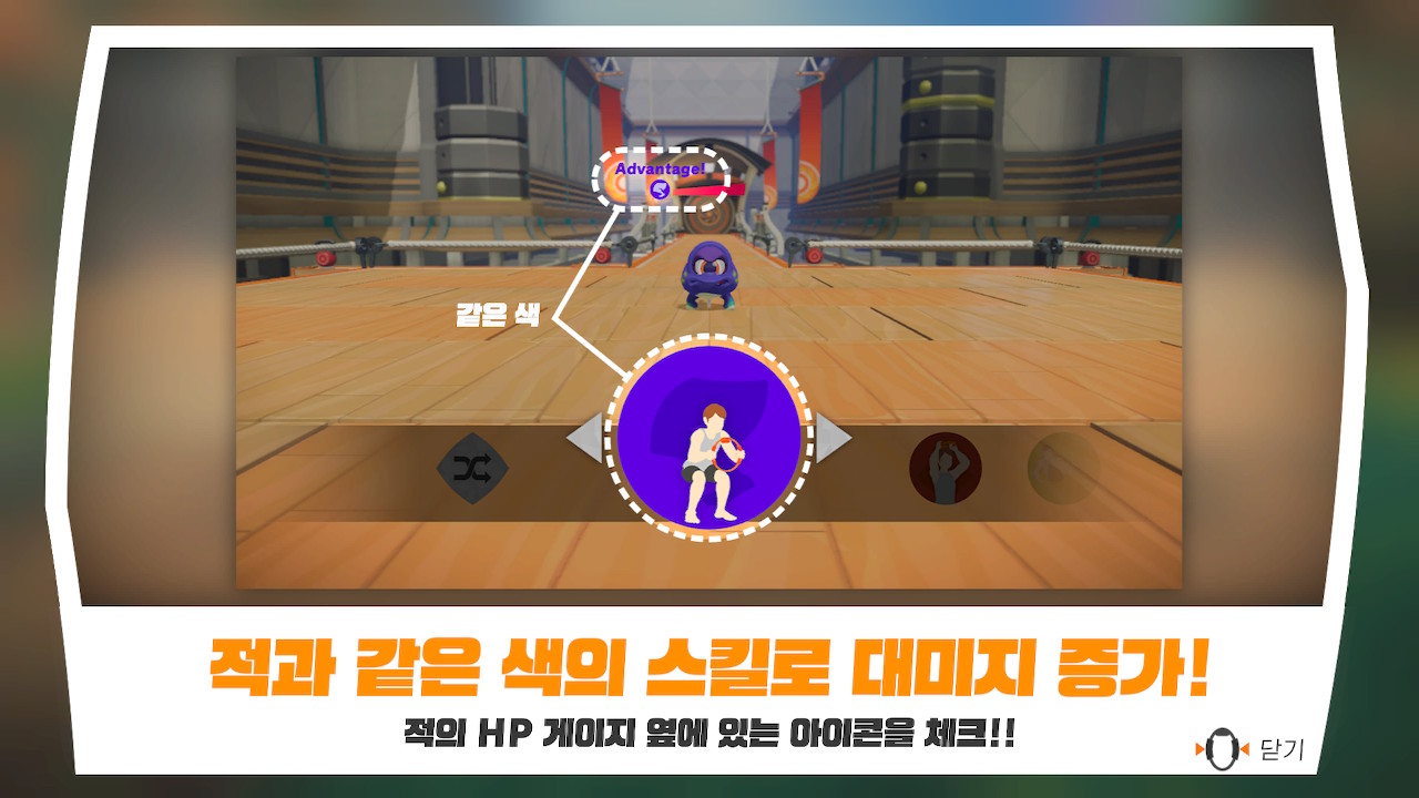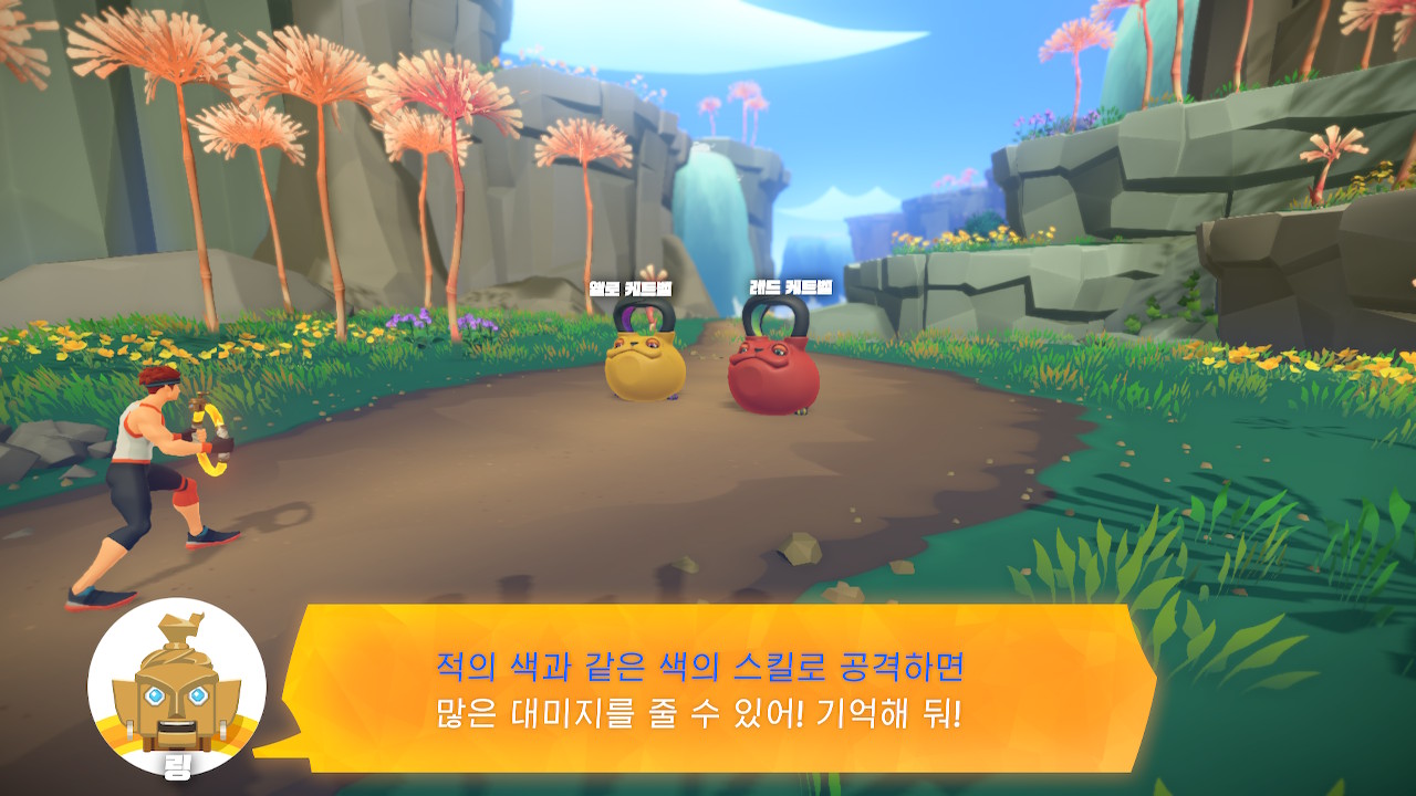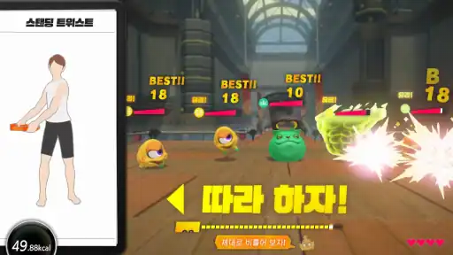 적들의 색상이 어떤 색인지를 확인하고, 그 색과 일치하는 운동을 해야 하는... RPG 게임의 속성과 비슷한 이 시스템을 잘 활용해야 보다 쉽게 게임을 클리어 할 수 있습니다.