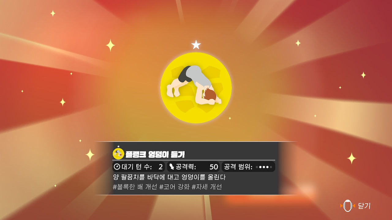 오늘은 플랭크 엉덩이 들기라는 피트 스킬을 획득했습니다.