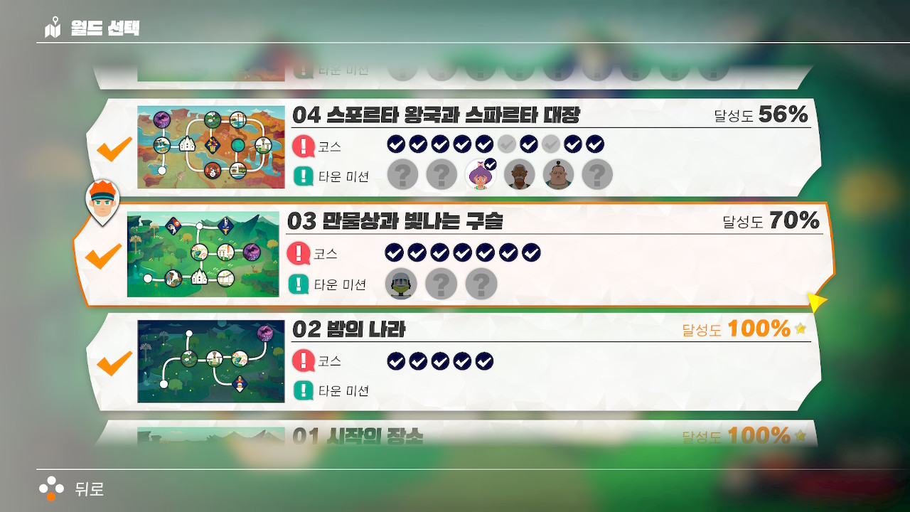 타운 미션이 보이지 않아서 달성도 100% 클리어가 불가능했던 월드 3와는 달리 월드 4는 약간의 플레이를 하다보니 타운 미션을 만날 수 있었습니다.