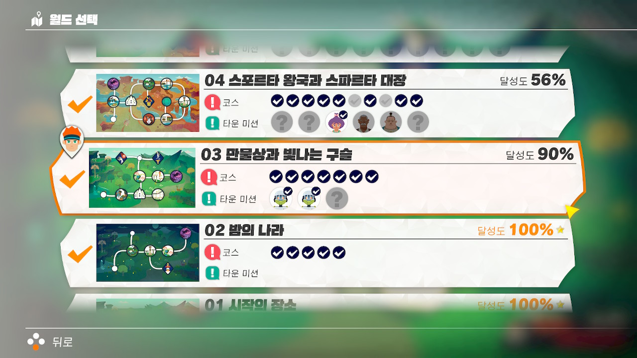 타운 미션이 보이지 않아서 달성도 100% 클리어가 불가능했던 월드 3와는 달리 월드 4는 약간의 플레이를 하다보니 타운 미션을 만날 수 있었습니다.