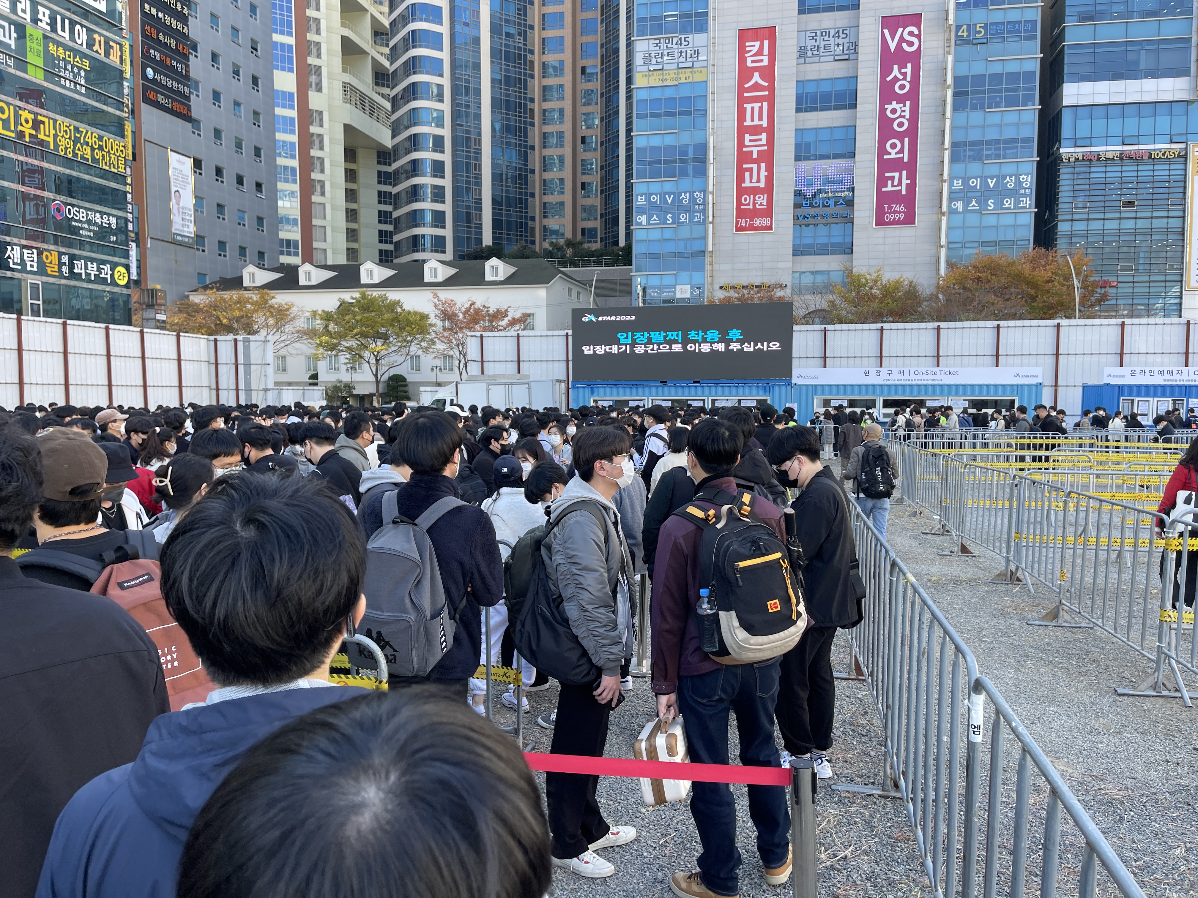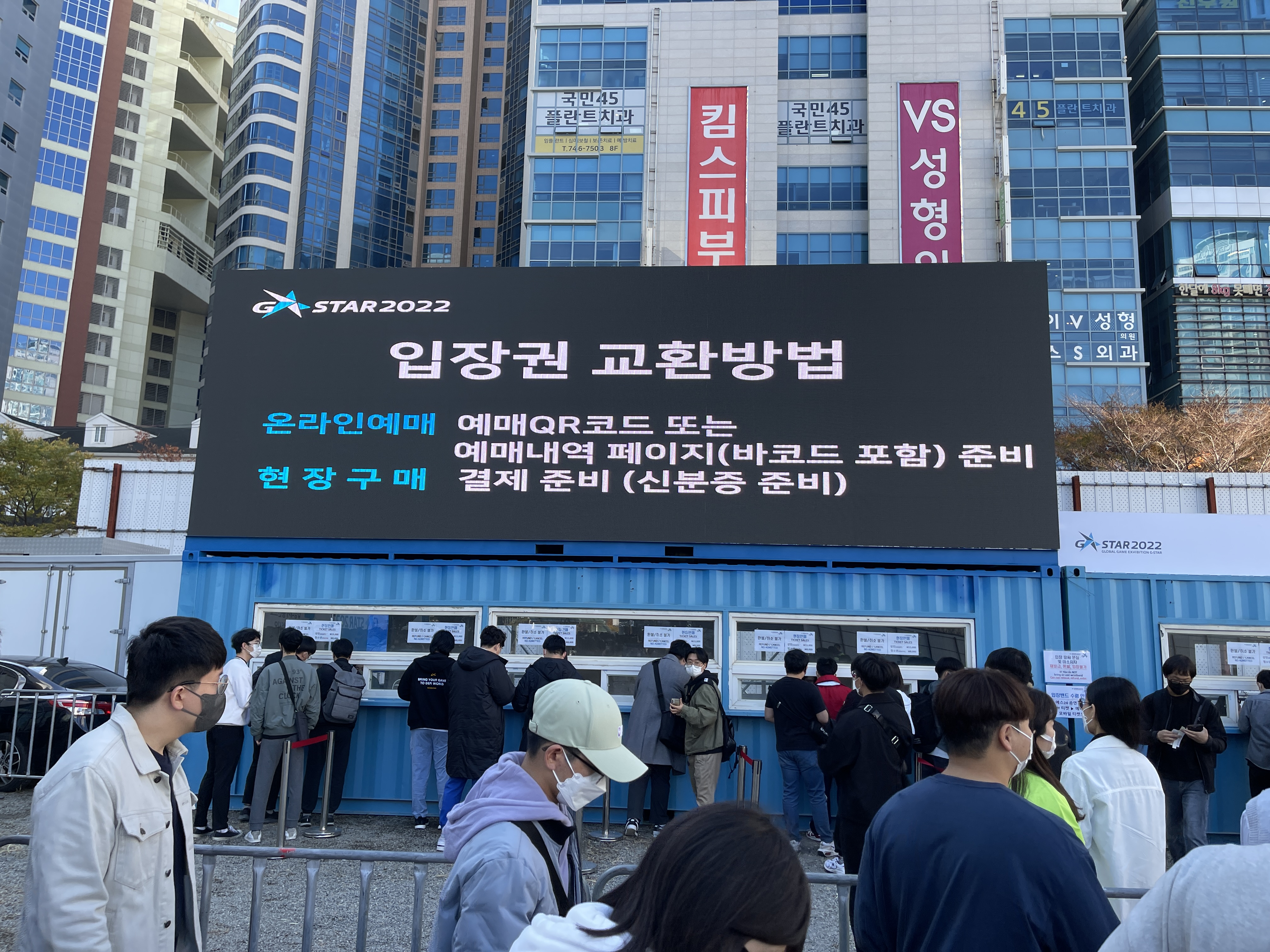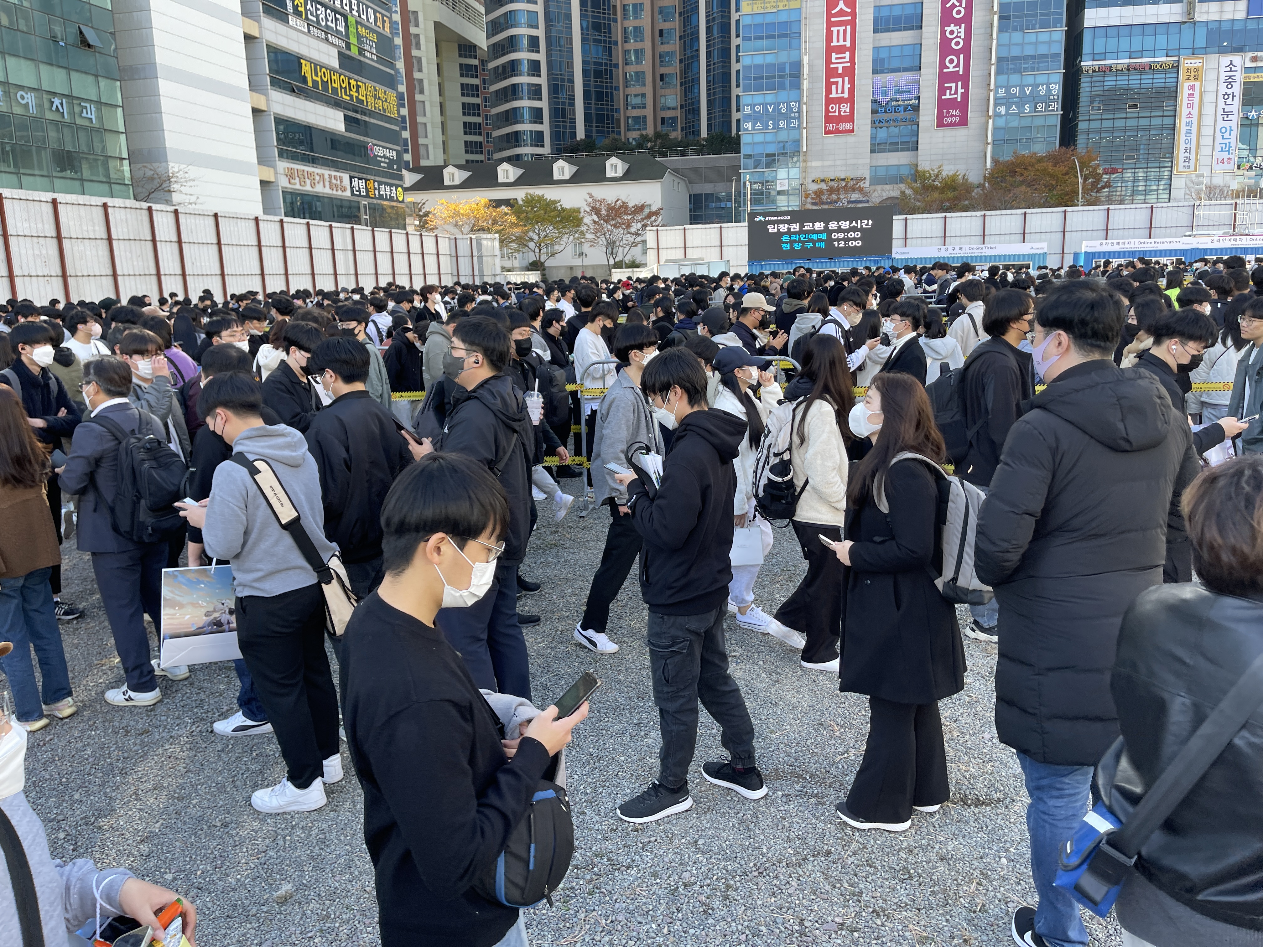 어제 오늘 관람한 지스타 2022의 대기열 중 가장 긴 대기시간을 자랑하고 있었습니다.