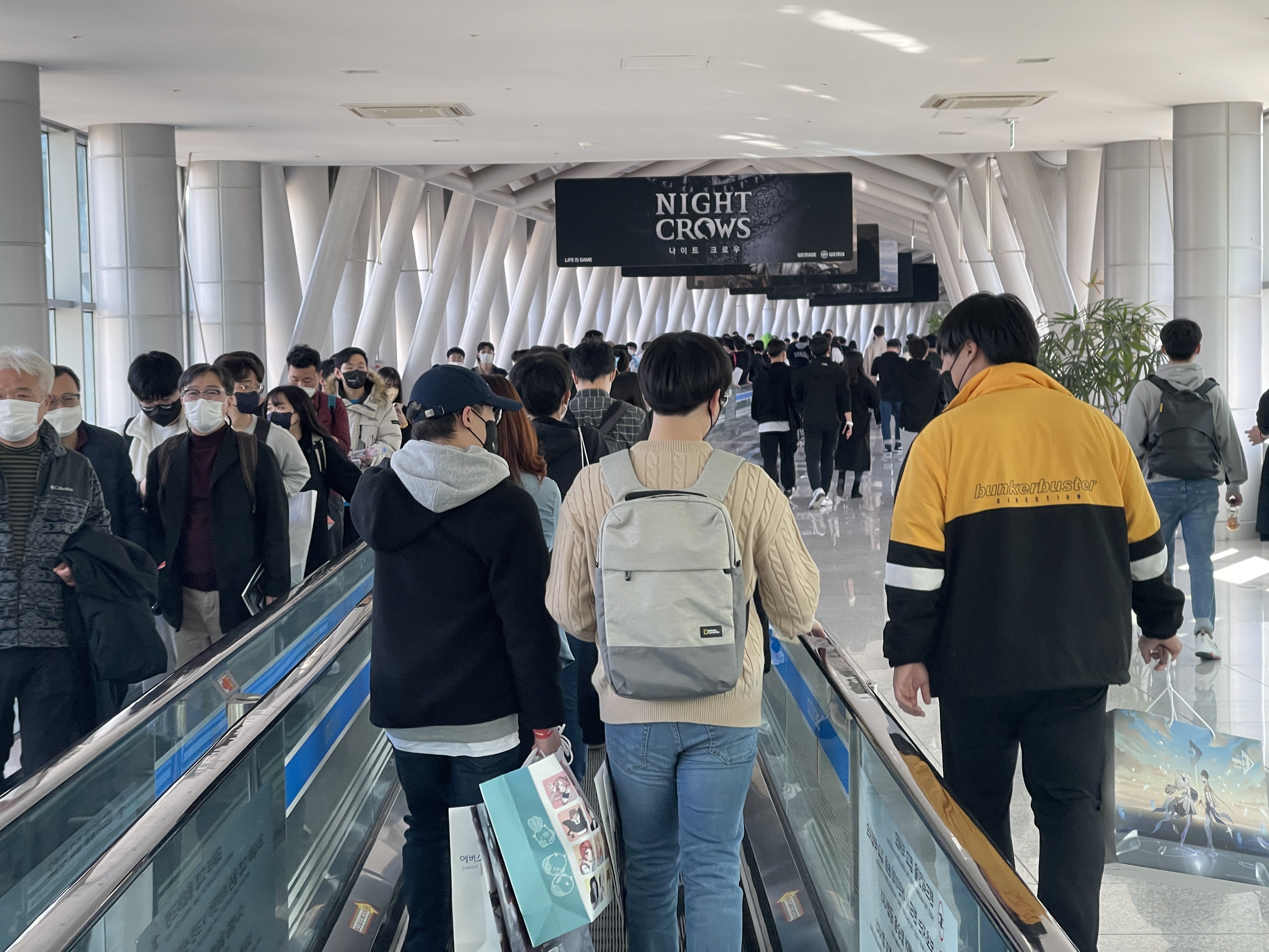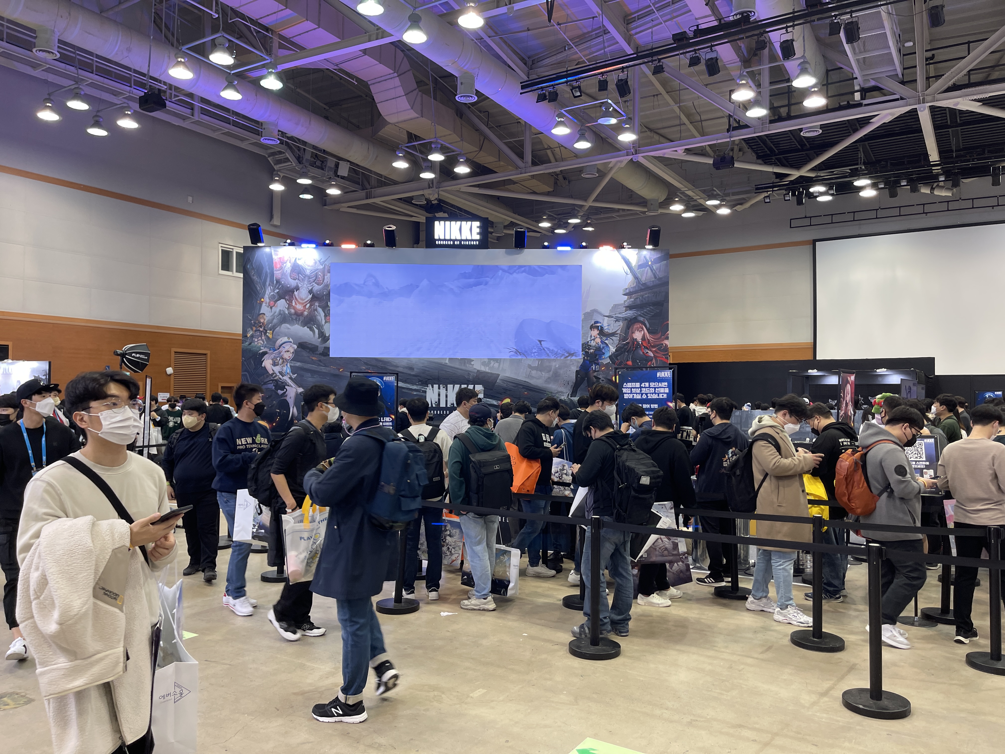 넥슨 부스 오픈 준비로 한참 바쁠 친구를 잠깐 불러내서 준비한 선물을 전달하고 자리를 벗어나려 했는데, 친구가 제가 가지고 있는 짐을 자기 회사 백스테이지에 보관해주겠다고 해서 다행히 가벼운 몸과 마음으로 현장 구매 대기열로 이동할 수 있었습니다.