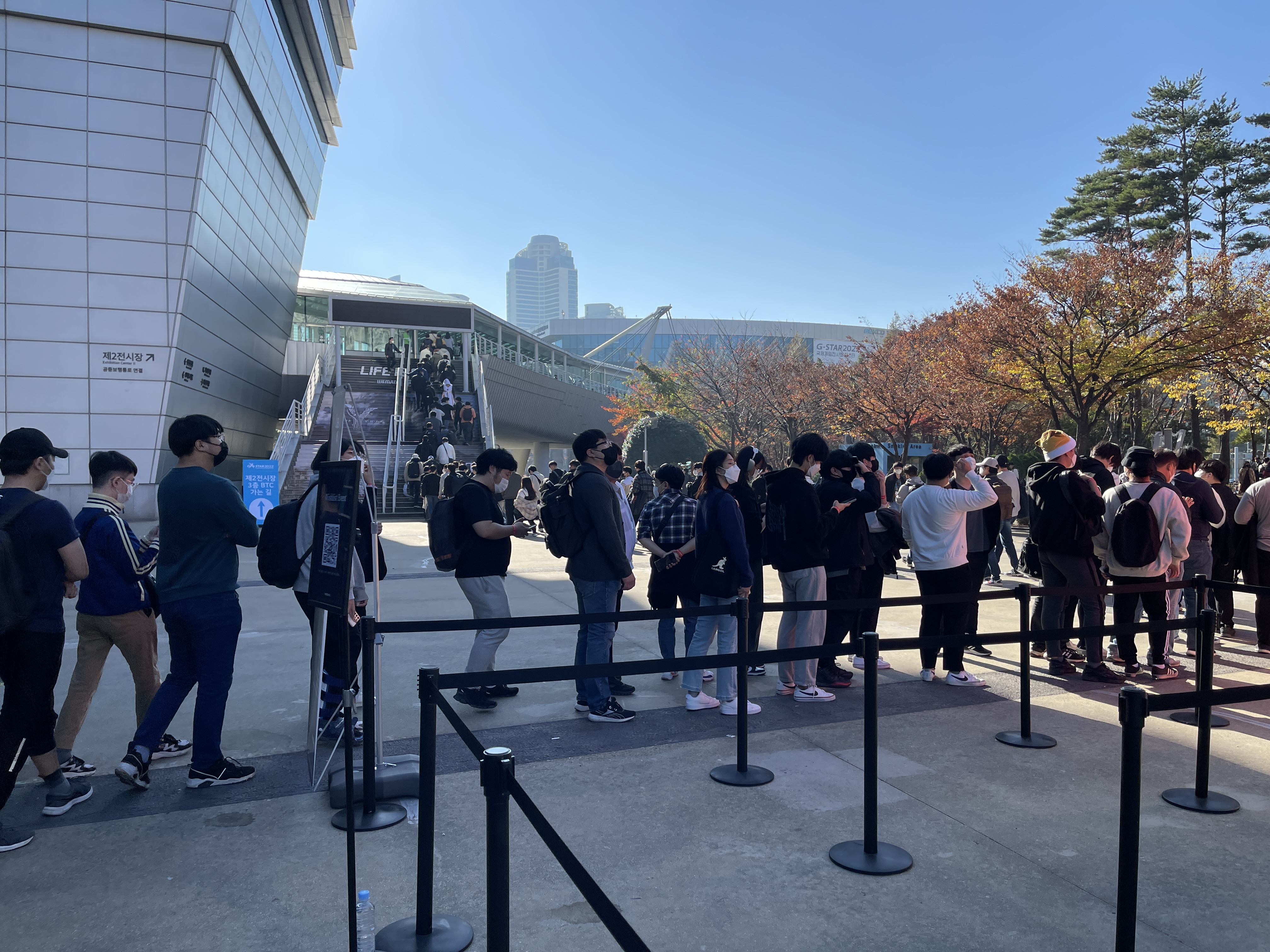 어제 오늘 관람한 지스타 2022의 대기열 중 가장 긴 대기시간을 자랑하고 있었습니다.