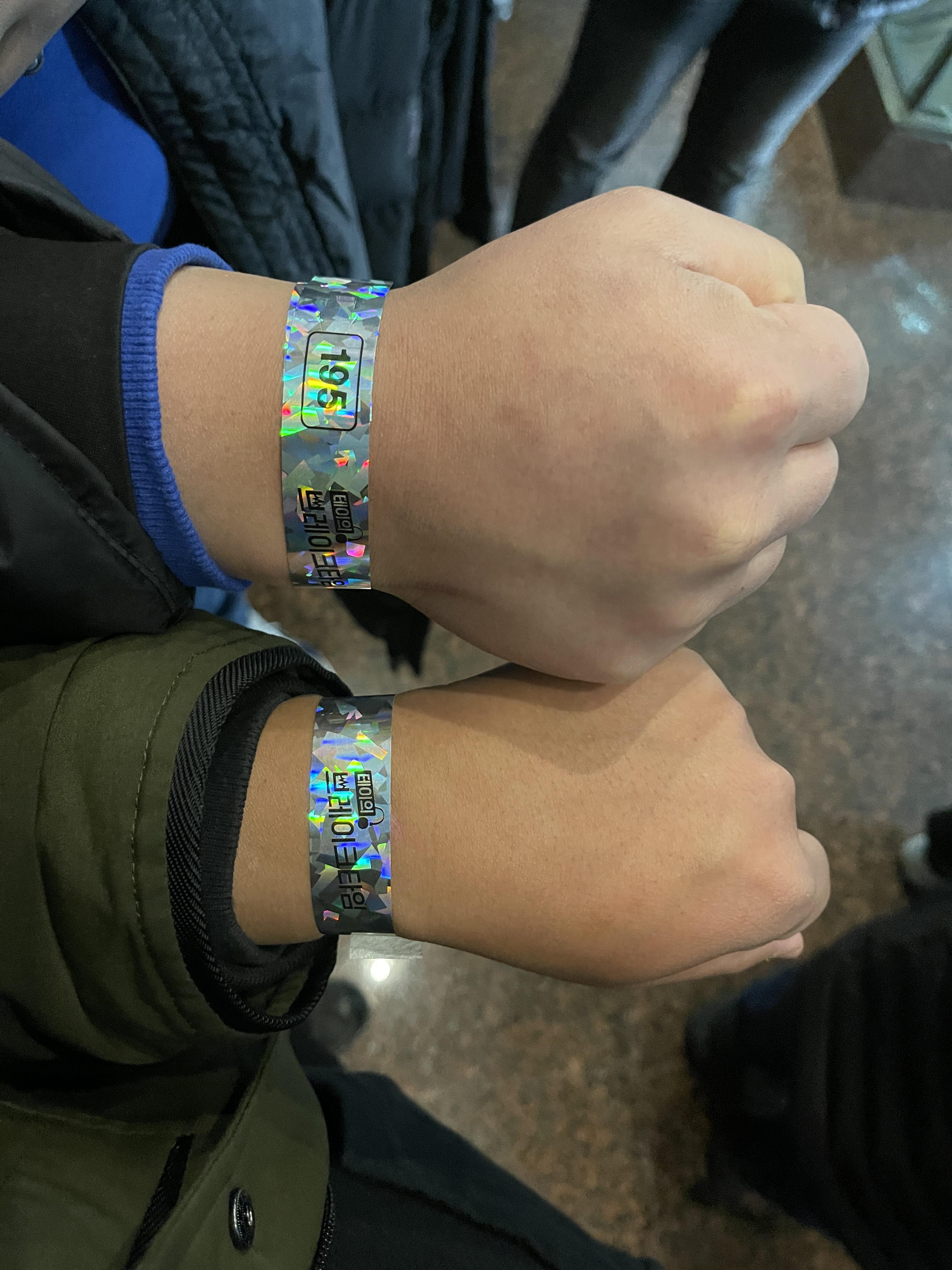 초상권 활용 동의 및 공개 방송 당첨자 확인을 위한 서명을 하고, 원하는 자리를 선택, 해당 좌석의 팔찌를 받는 방식으로 입장 절차가 진행되었습니다.