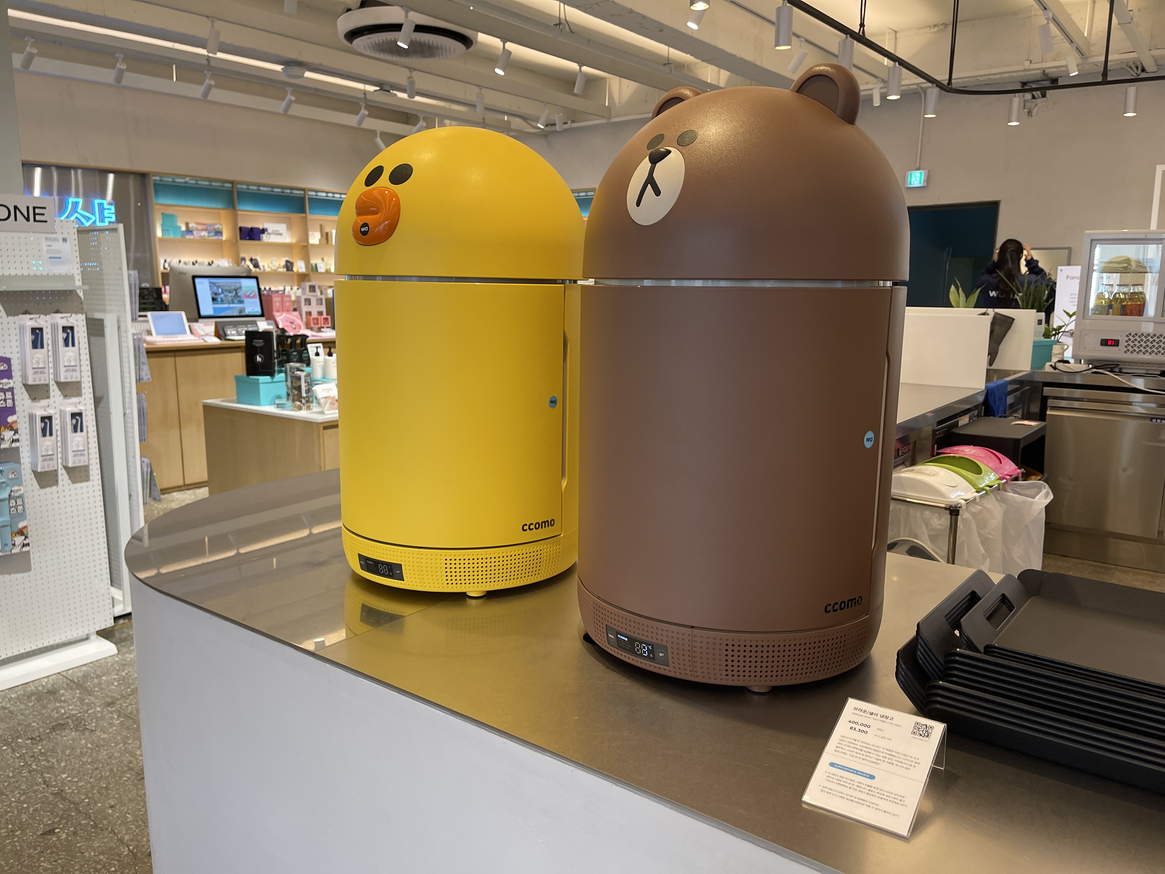 라인프렌즈의 캐릭터 중 브라운과 샐리를 활용하여 만들어진 미니 냉장고!!