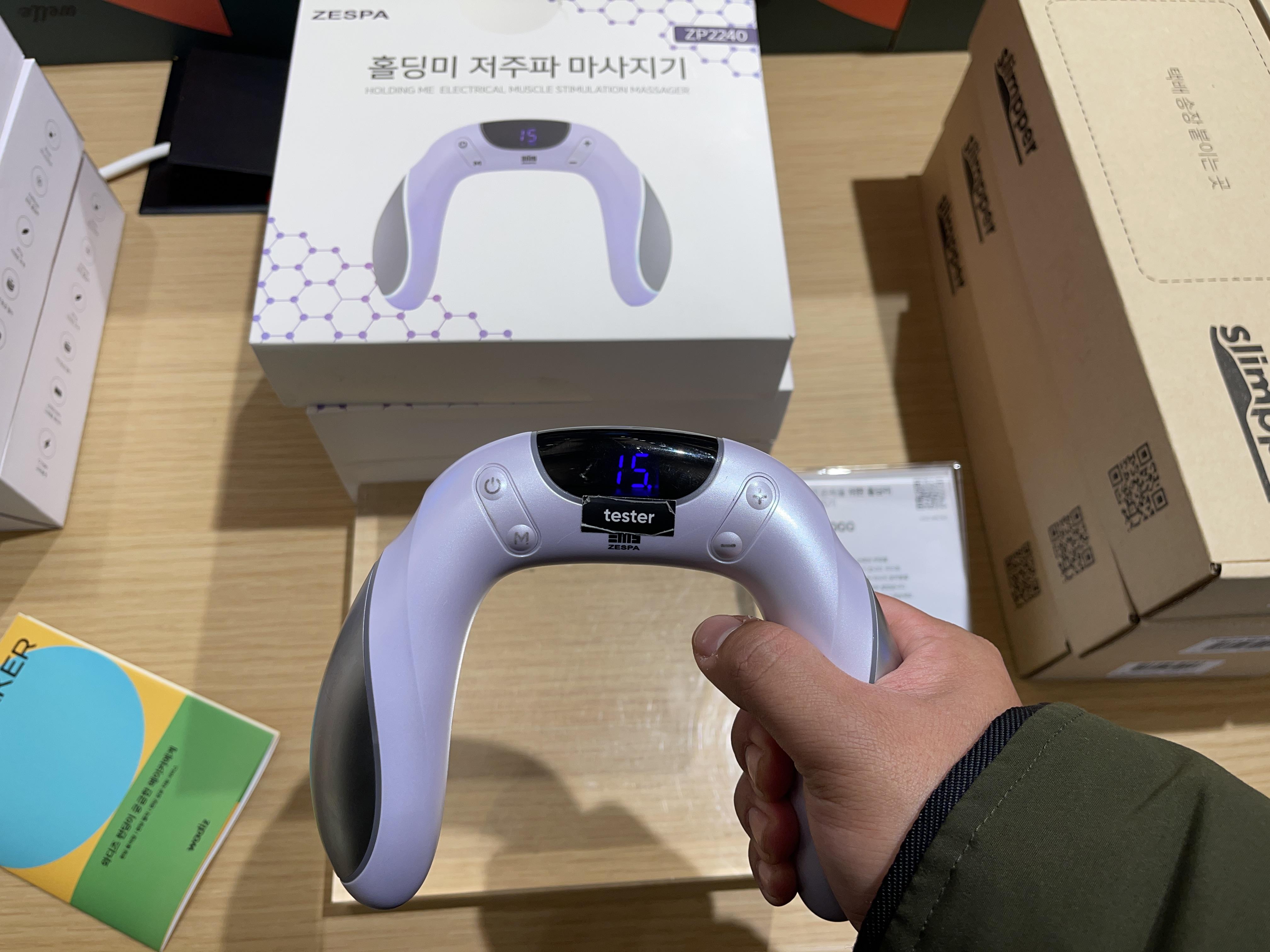 부메랑처럼 생긴 홀딩미 저주파 마사지기라는 것은 체험해보니 제법 시원해서 다음 달 즈음 구매를 할까 고민하고 있습니다. 인터넷에서도 팔겠죠?