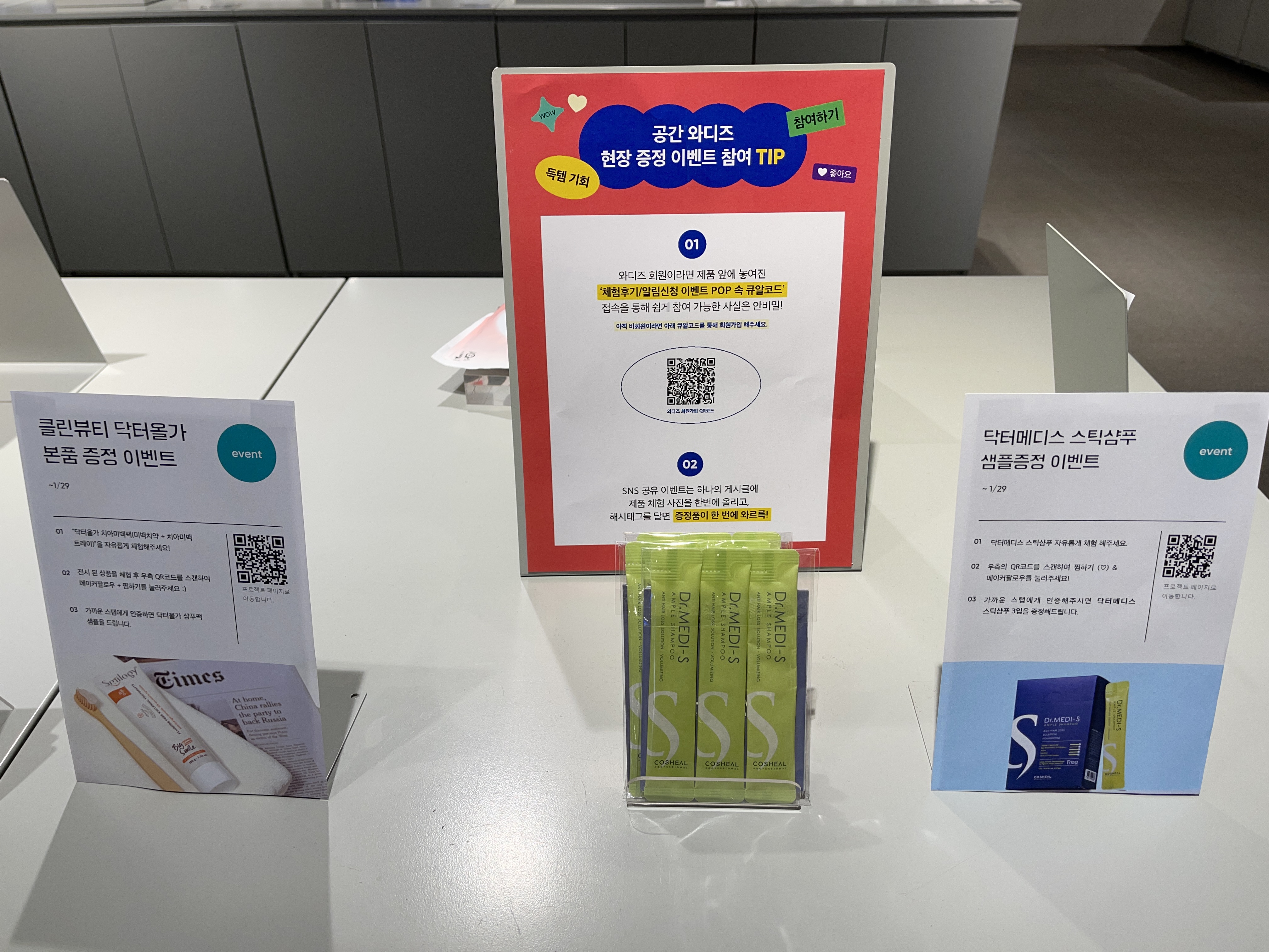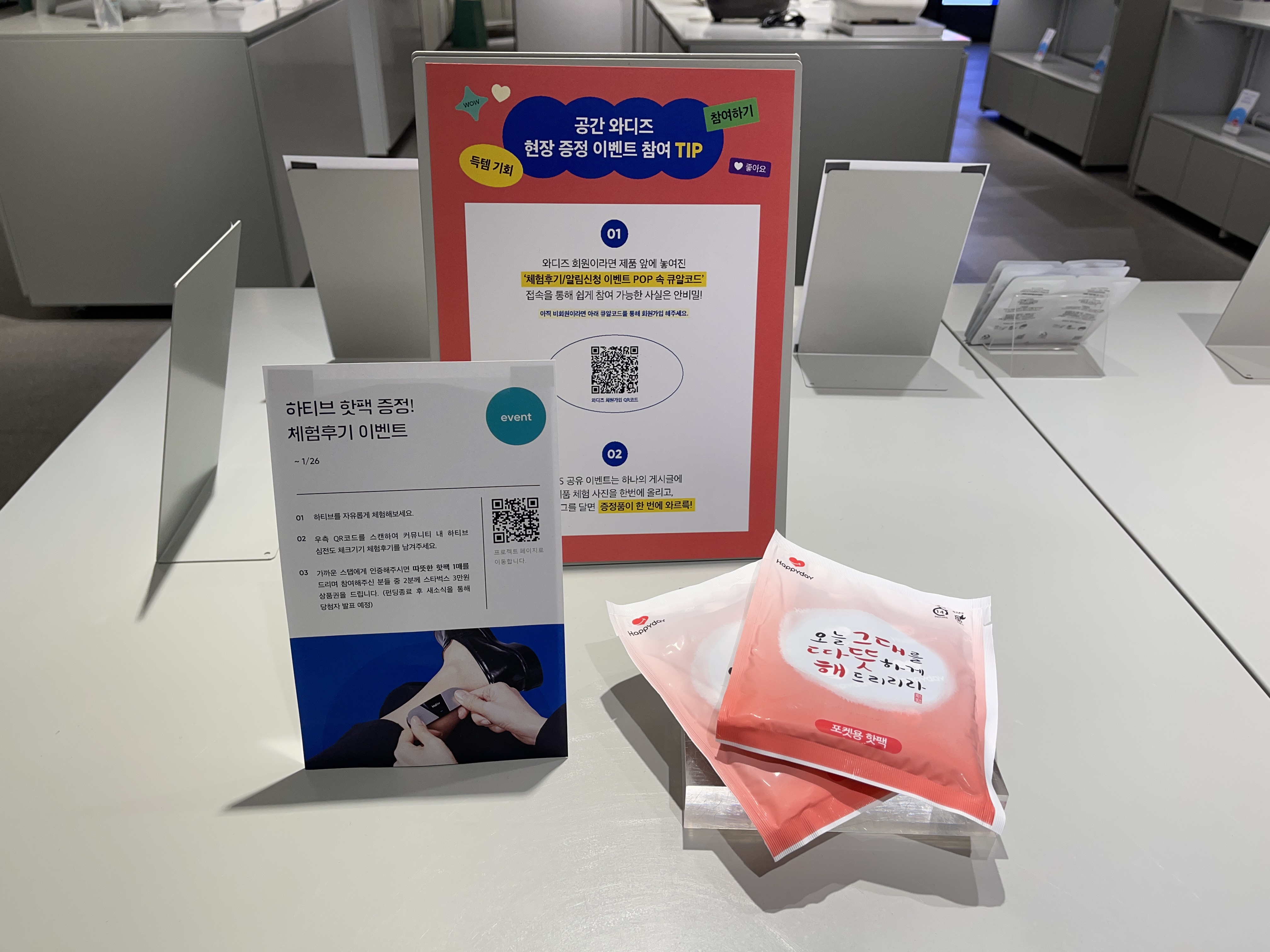 현장에서 상품을 체험해보고 와디즈에 체험 후기를 등록하거나, 찜하기 등을 누르면 소소한 경품을 받을 수 있는 이벤트도 진행되고 있었습니다.