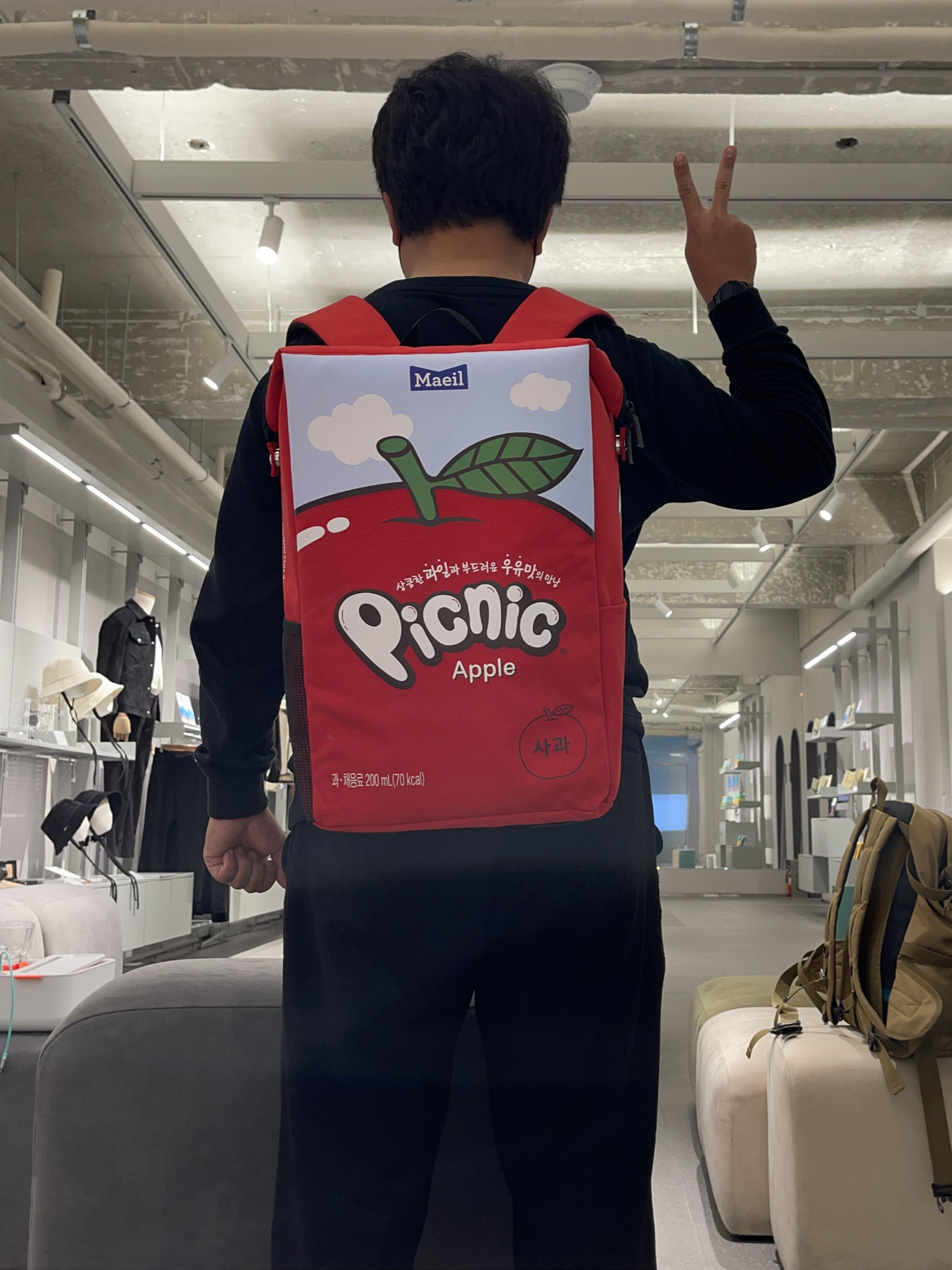 그건 바로 매일유업의 과일음료 '피크닉 사과' 모습을 한 가방.