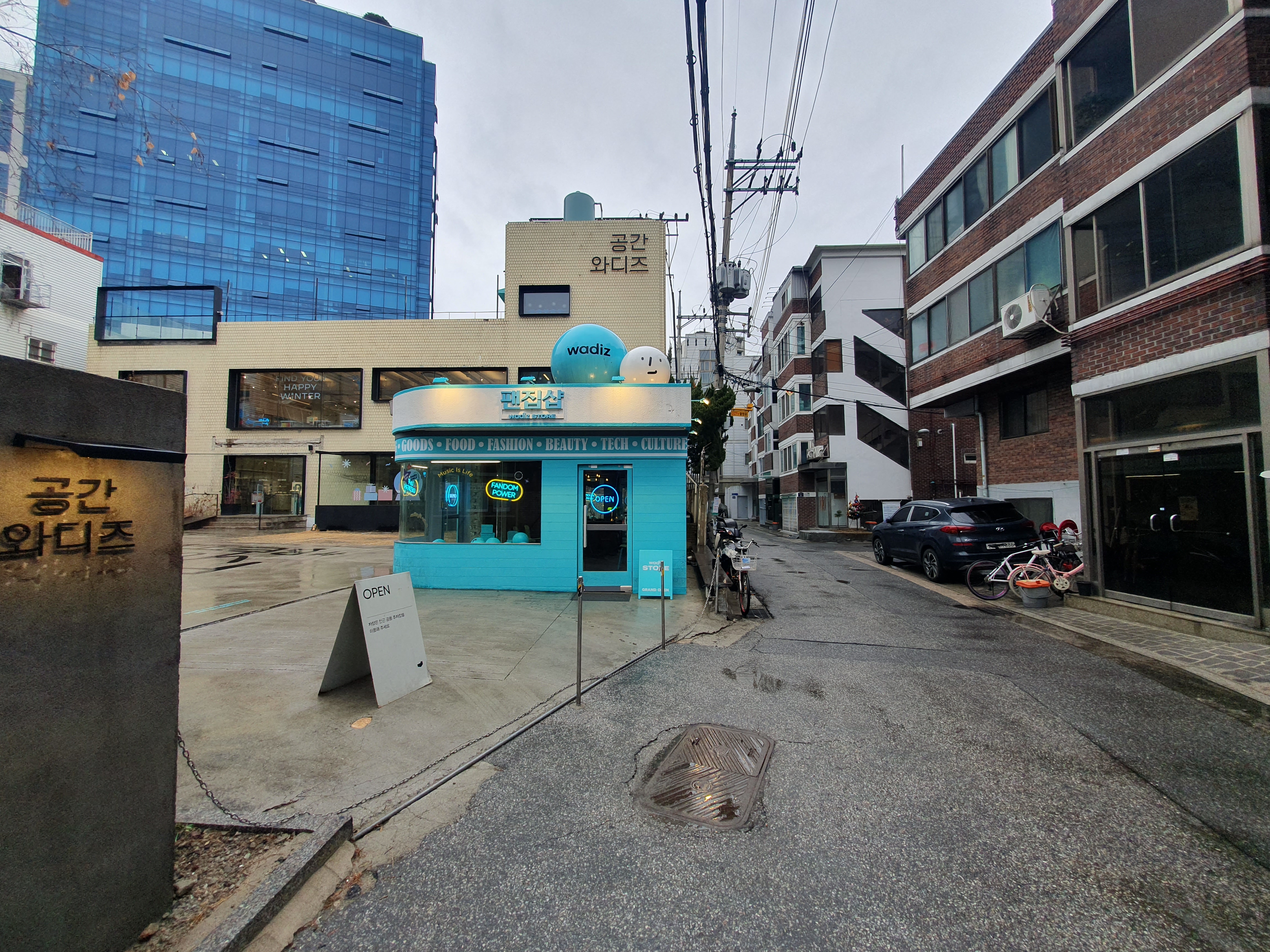 카페인지, 아니면 옷가게인지 정체를 알 수 없는 영어로만 가게 이름을 써놓은 여러 가게들이 보이고, '이런 곳에 와디즈가 있다고?'라는 생각을 하게 될 즈음....