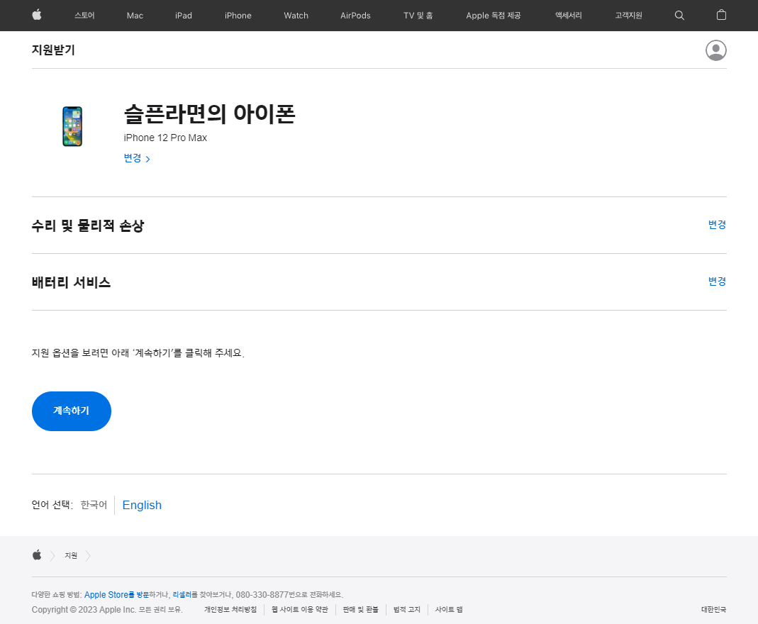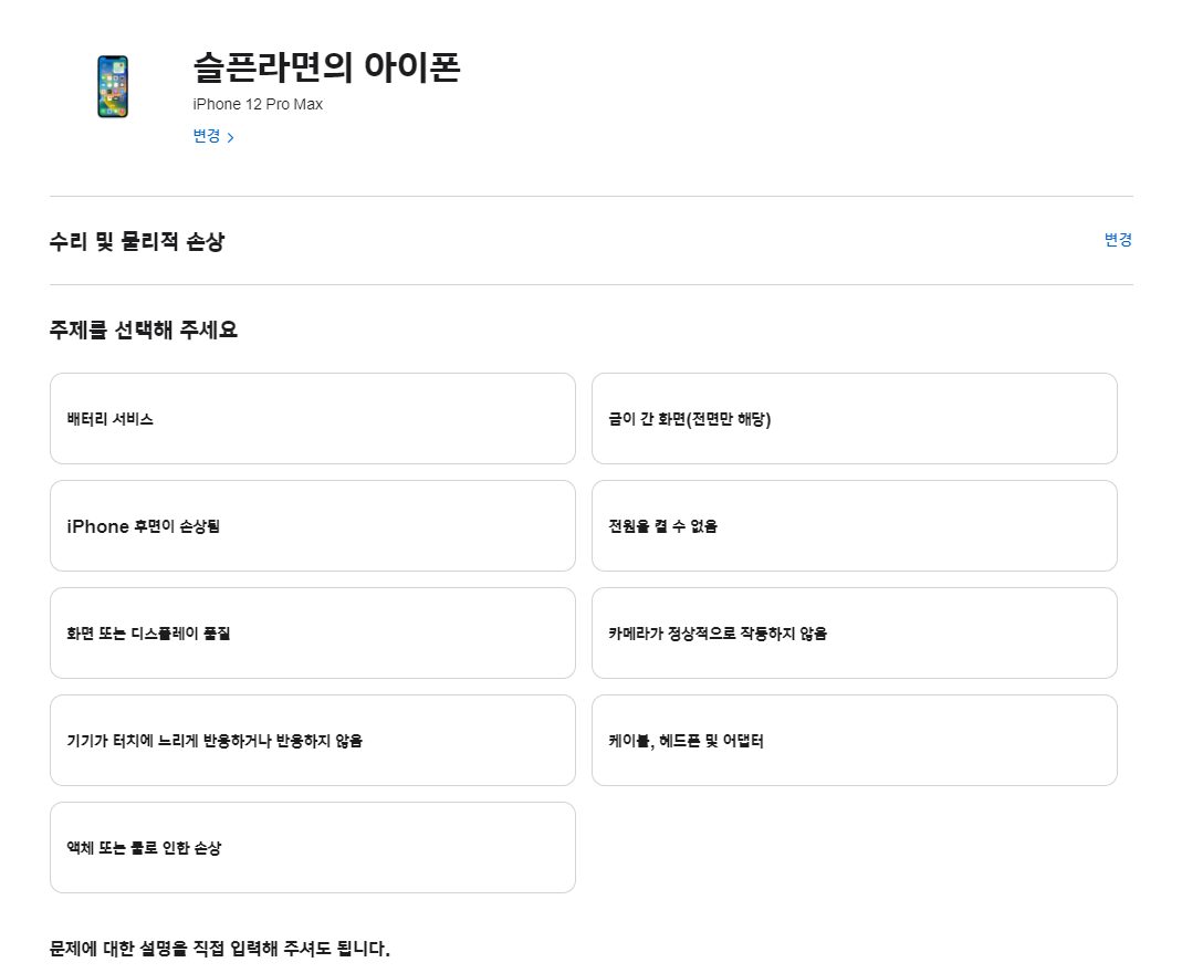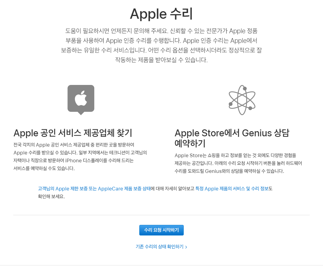 [수리 요청 시작하기(파란색 버튼)]를 눌러줍니다.