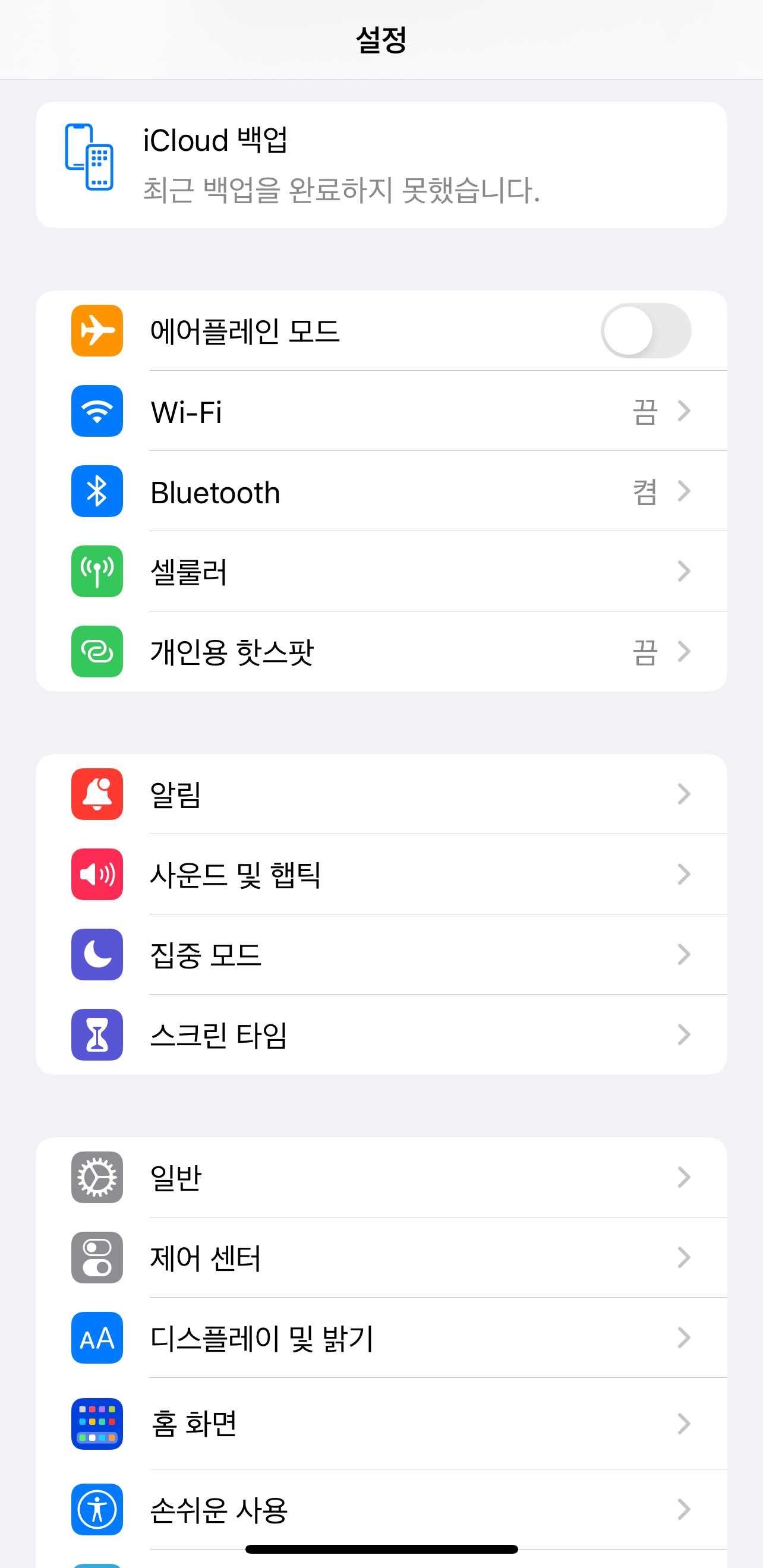 애플 ID로 로그인을 하지 않은 상태라면 로그인을 먼저 해줘야 합니다.