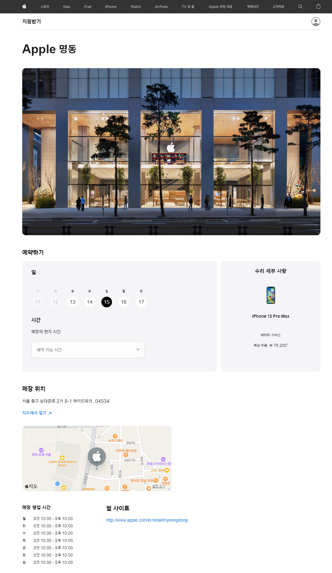 저는 서울에 일보러 가는 김에 애플스토어 구경도 하고 싶어서 'Apple 명동'을 선택했습니다.