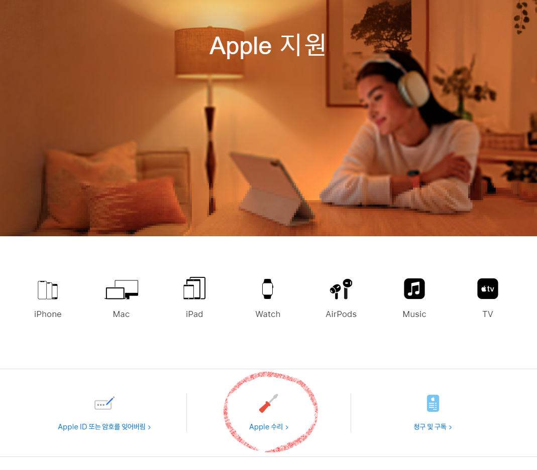 드라이버 모양 아이콘이 있는 [Apple 수리]를 선택해줍니다.