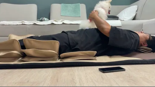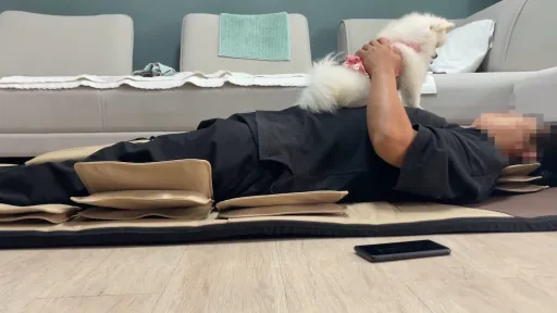 그나저나... 안마 좀 받아보려는데 제가 누워 있어서 그런지 강아지 녀석이 신이났습니다.