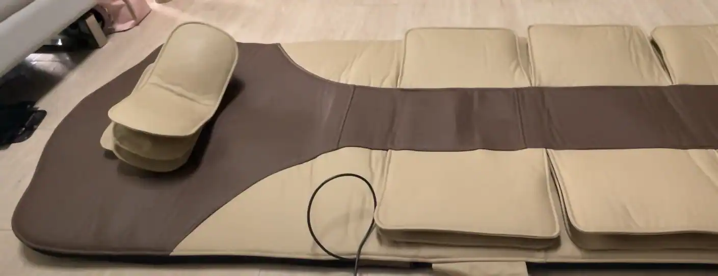 안마는 크게 목과 어깨, 상반신, 골반, 허벅지와 종아리 쪽에 이뤄지고 온열 기능도 있습니다.