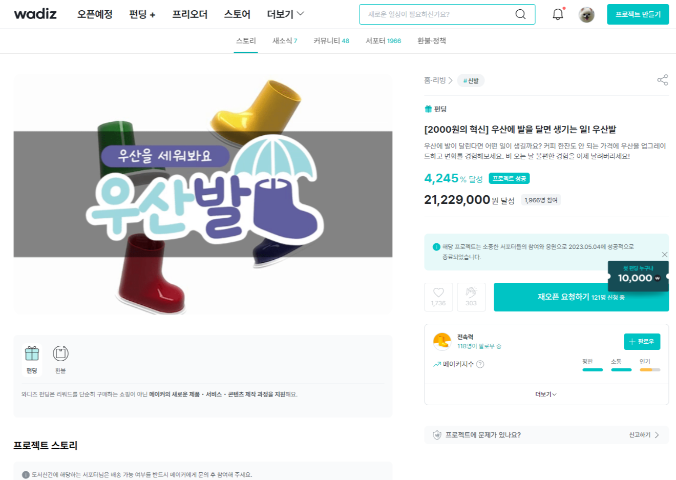 때마침 와디즈를 통해 크라우드 펀딩에 참여한 장마 대비 상품이 도착해서 리뷰를 진행해보려 합니다.
