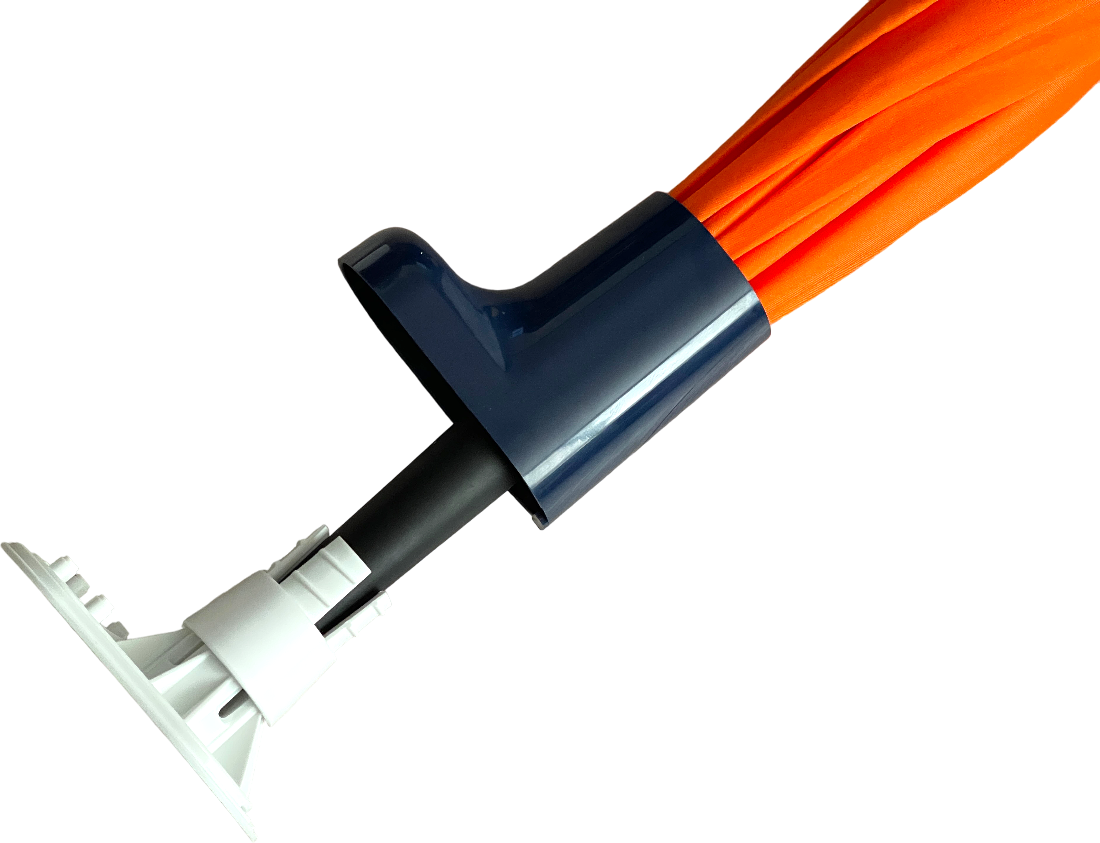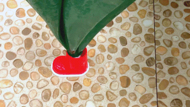 우산 손잡이와 우산발 앞꿈치의 방향을 일치시키면 위 사진에서 보이는 것처럼 우산을 세울 수 있습니다.