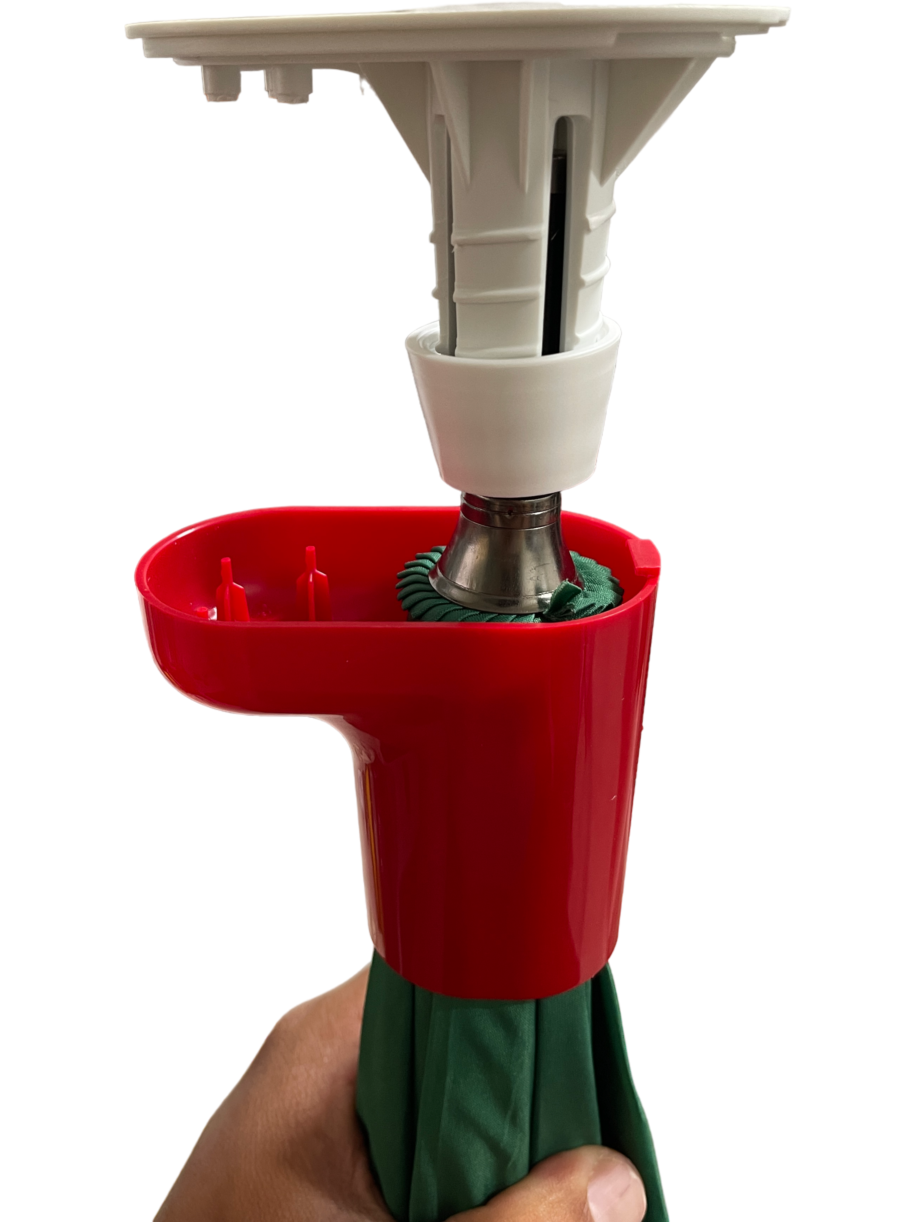 우산에 뚜껑(?)을 먼저 넣고 조임용 부품을 넣은 뒤, 마지막으로 본체를 우산 끝에 끼워서 잘 조여주고, 뚜껑을 끼워주면 조립 끝.