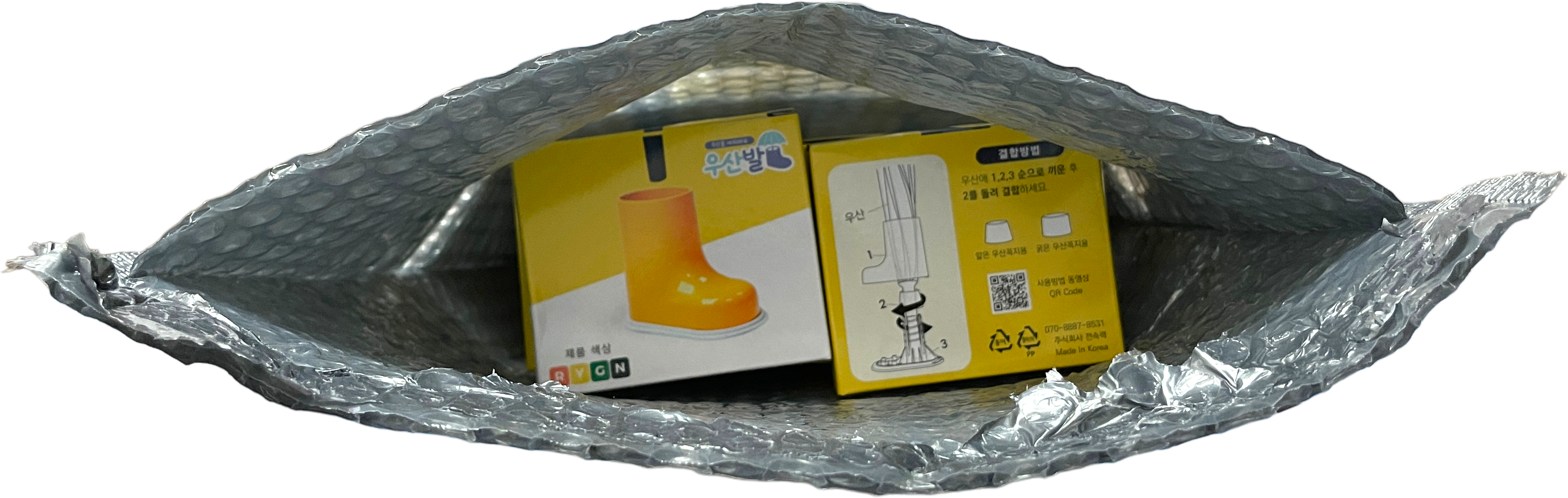 하지만, 위 제품 패키지 사진을 살펴보면... 이 박스 안에 어떤 색상의 우산발이 담겨진 것인지 도통 알 수가 없습니다.
