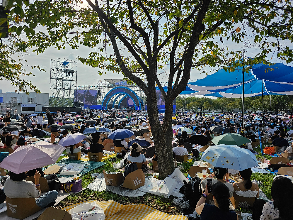 스페셜 게스트 아이유 출연 소식에 판매 부스를 조금 일찍 마감하고 스탠딩존으로 향했습니다.