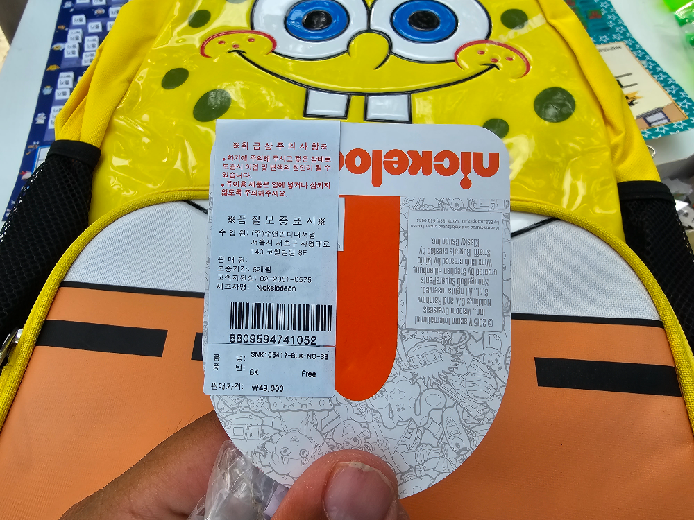 굉장히 귀여운 니켈로디언 공식 인증 스펀지밥 가방을 3,000원에 팔길래 구입했습니다.