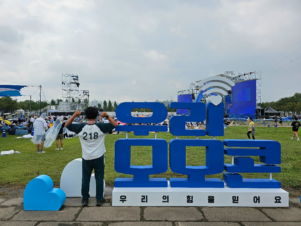 저 멀리 목소리가 들리는데 보러가지 못 하고 작은 휴대전화 화면으로 봐야했던 그 때....