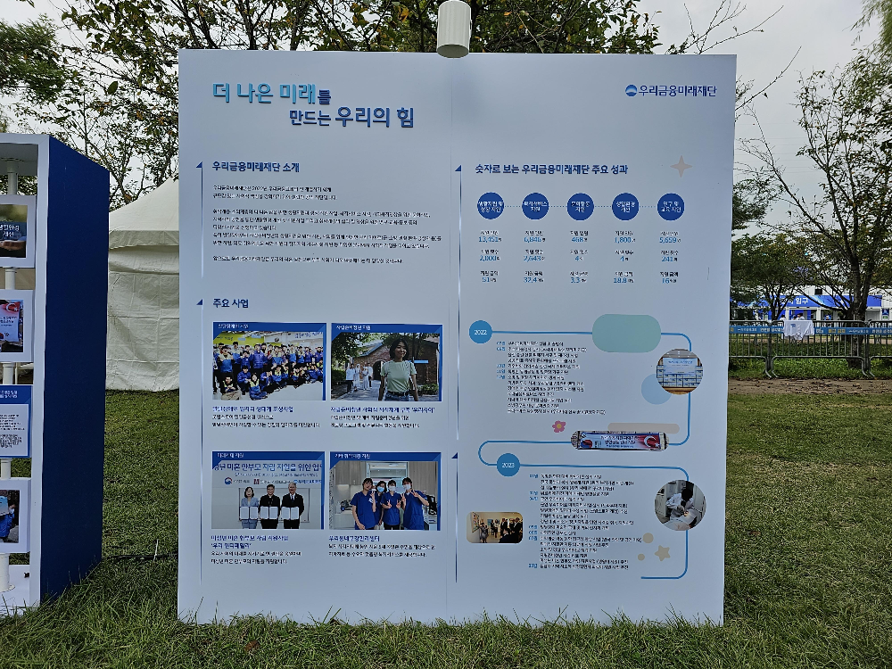 우리금융그룹이 운영하는 이 공간은 우리금융그룹에서 진행하는 사회공헌활동에 대해서 소개하는 내용으로 채워져 있었습니다.