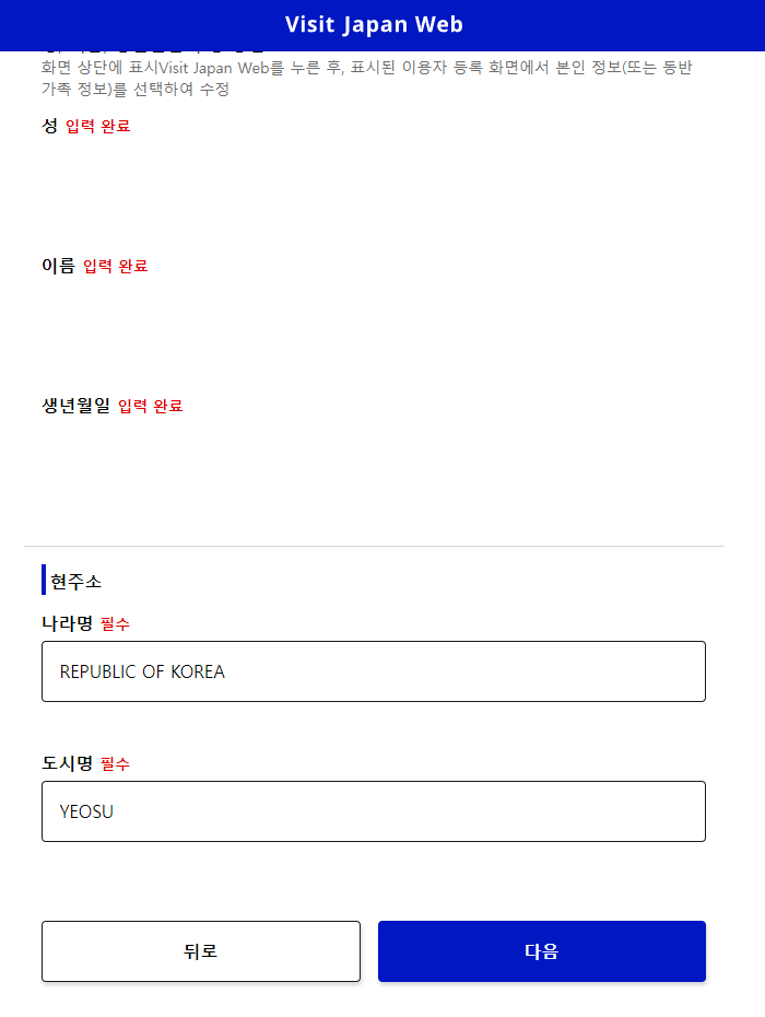 저는 함께 출발할 가족이 없으니 곧바로 [다음] 버튼을 눌러 줬습니다.