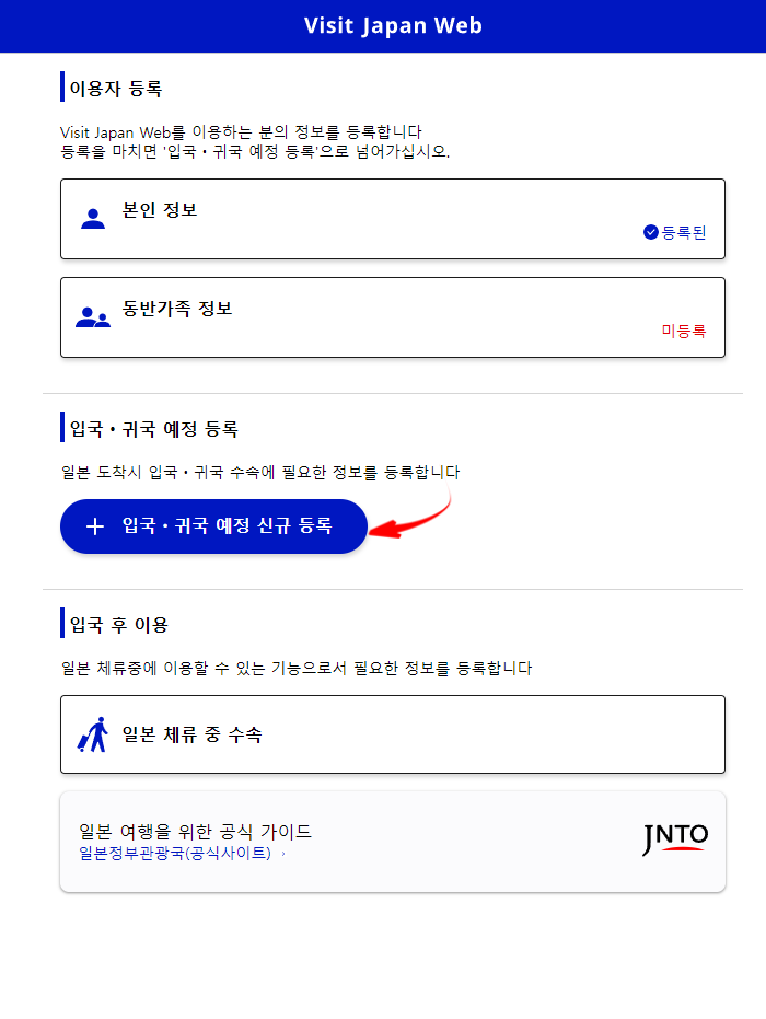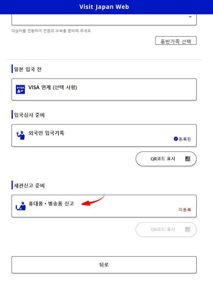 [입국·귀국 수속으로 돌아가기]를 눌러 줍니다.