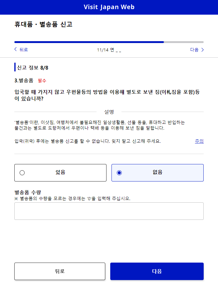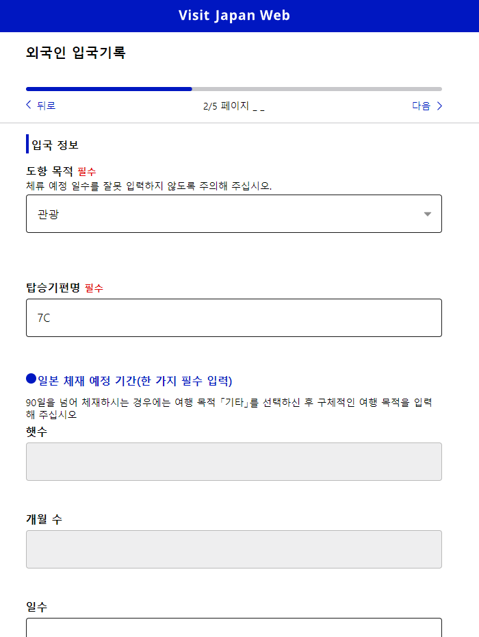 일본 체류 일수를 입력해주고 [다음] 버튼을 눌러 줍니다.