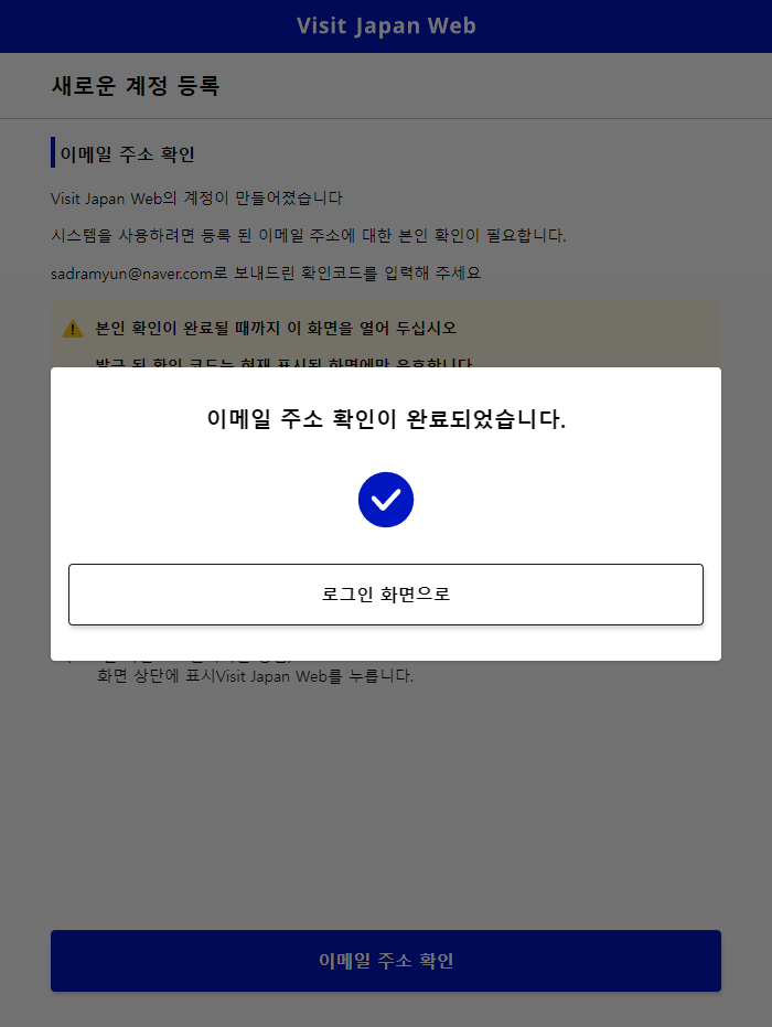 이메일 주소를 확인하고 하단의 버튼을 눌러 줍니다.